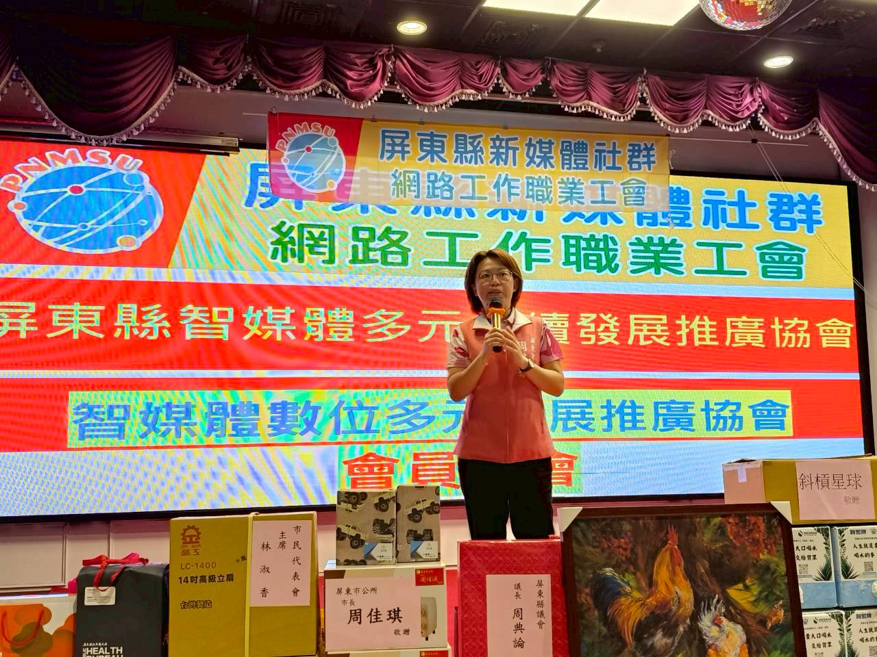 晚間 6 時會員大會正式開始,由 理事長黃婉柔發表未來發展方向與藍圖。她表示,新媒體工會的成立不僅是因應產業變動,更肩負著 「連結政府資源、培育在地人才、促進產業升級」 的使命。工會將持續推動產官學合作,透過課程培訓、企業合作、直播節目、社群營運輔導等方式,使屏東在數位經濟中擁有一席之地。