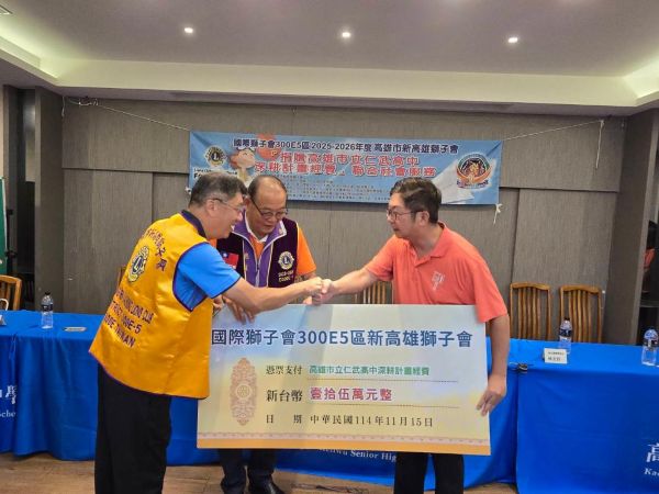 【視傳媒記者吉雄世高雄報導】仁武高中於11月15日假學校3樓視聽教室辦理新高雄獅子會捐贈學校深耕計畫經費活動。新高雄獅子會在仁武高中家長會林正得會長的牽線下,由現任獅子會周庭冥會長邀約20個單位(第四專區主席鄭素臻獅友、第七分區主席楊金龍獅友、高雄市東區獅子會、高雄市仁愛獅子會、高雄市博愛獅子會、高雄市文化獅子會、高雄市木棉獅子會、高雄市利多獅子會、高雄市PK幸福獅子會、高雄市鎮海獅子會、高雄市新高雄獅子會、高頂實業有限公司、浚森有限公司、華新禾田農業商行、喬治亞國際開發股份有限公司、堂丞股份有限公司、富田動力科技有限公司、歐司盟企業有限公司、高雄市雄獅慢跑協會、超烽實業股份有限公司),共同捐贈仁武高中15萬元的深耕計畫經費,讓仁武高中可以將經費運用於家境清寒、急難救助及一些緊急事項之應用。