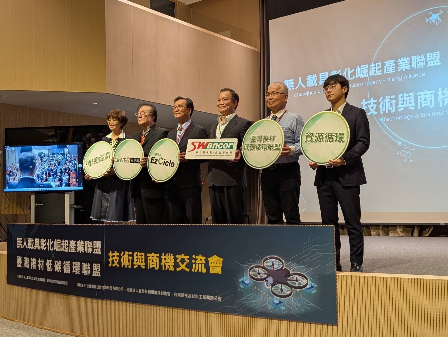 臺灣複材低碳循環聯盟主席蔡朝陽表示,低碳循環技術已是企業生存與國際競爭力的核心:「本次交流會是臺灣首度將最先進的『低碳複材』與最火熱的『無人載具智能應用』結合,不僅是要建立在地化的低碳循環供應鏈,更要以可回收技術,從源頭解決產業的碳足跡問題,賦能無人載具和機器人產業鏈,讓臺灣的智能載具具備國際領先的綠色競爭力。」