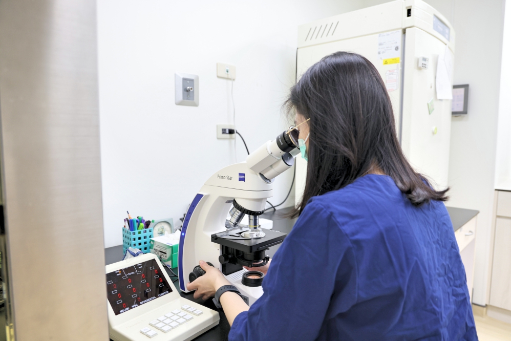 ▲技術人員在實驗室操作顯微鏡完成生育力保存所需的品質評估作業。(圖/新竹馬偕紀念醫院提供)
