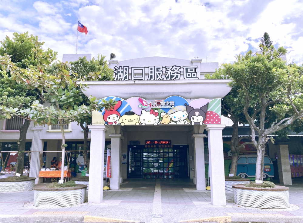 遊客一踏進湖口服務區,無論是室內餐廳、扶梯、座位休息區,還是戶外空間,都能發現三麗鷗六大人氣角色:HELLO KITTY、酷洛米、大耳狗喜拿、布丁狗、蛋黃哥及美樂蒂,每個角落都充滿驚喜。