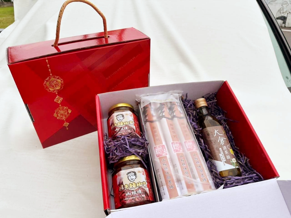 ▲苗栗縣三義鄉雙潭農業文旅產業發展協會「茶油盈福麵」禮盒。(圖/桃竹苗分署提供)