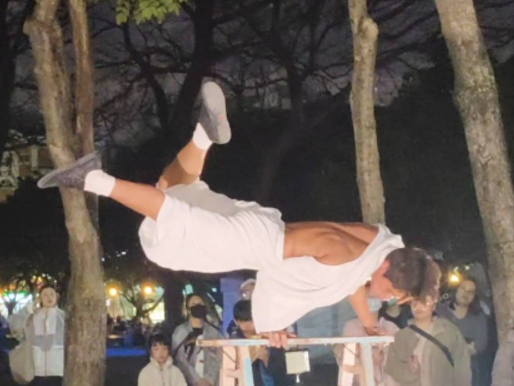 每到假日,勤美綠園道總是聚集了各式各樣的街頭藝人與表演團體,音樂、舞蹈與笑聲交織成城市裡最生動的風景。然而,在眾多演出之中,今天最讓我難以忘懷的,莫過於一組令人屏息的特技表演。兩位表演者,一位來自中部、一位來自南部,早在國中時期便下定決心踏上特技這條路。這條路沒有捷徑,背後的辛苦與挫折,或許只有他們自己最清楚。