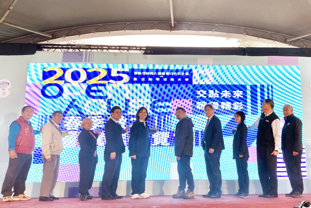 ▲勞動部2025首場大型就業博覽會今(3/15)日在陽明交大重磅登場,勞動部長洪申翰(右5)、竹市府秘書長張治祥(左5)、陽明交通大學副校長陳永富(右4)及桃竹苗分署長賴家仁(右2)與貴賓一同參與就業博覽會啟動儀式揭開序幕。