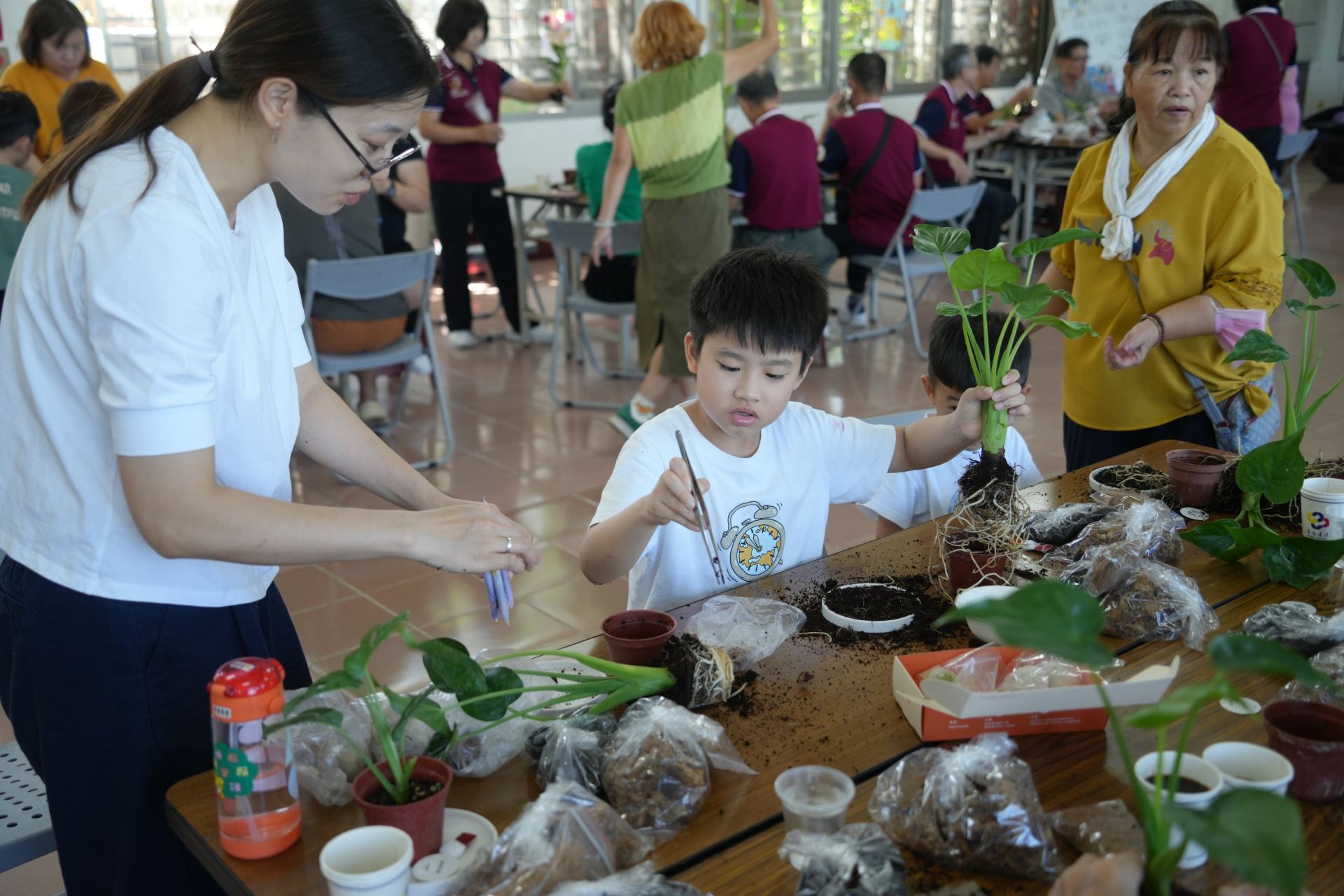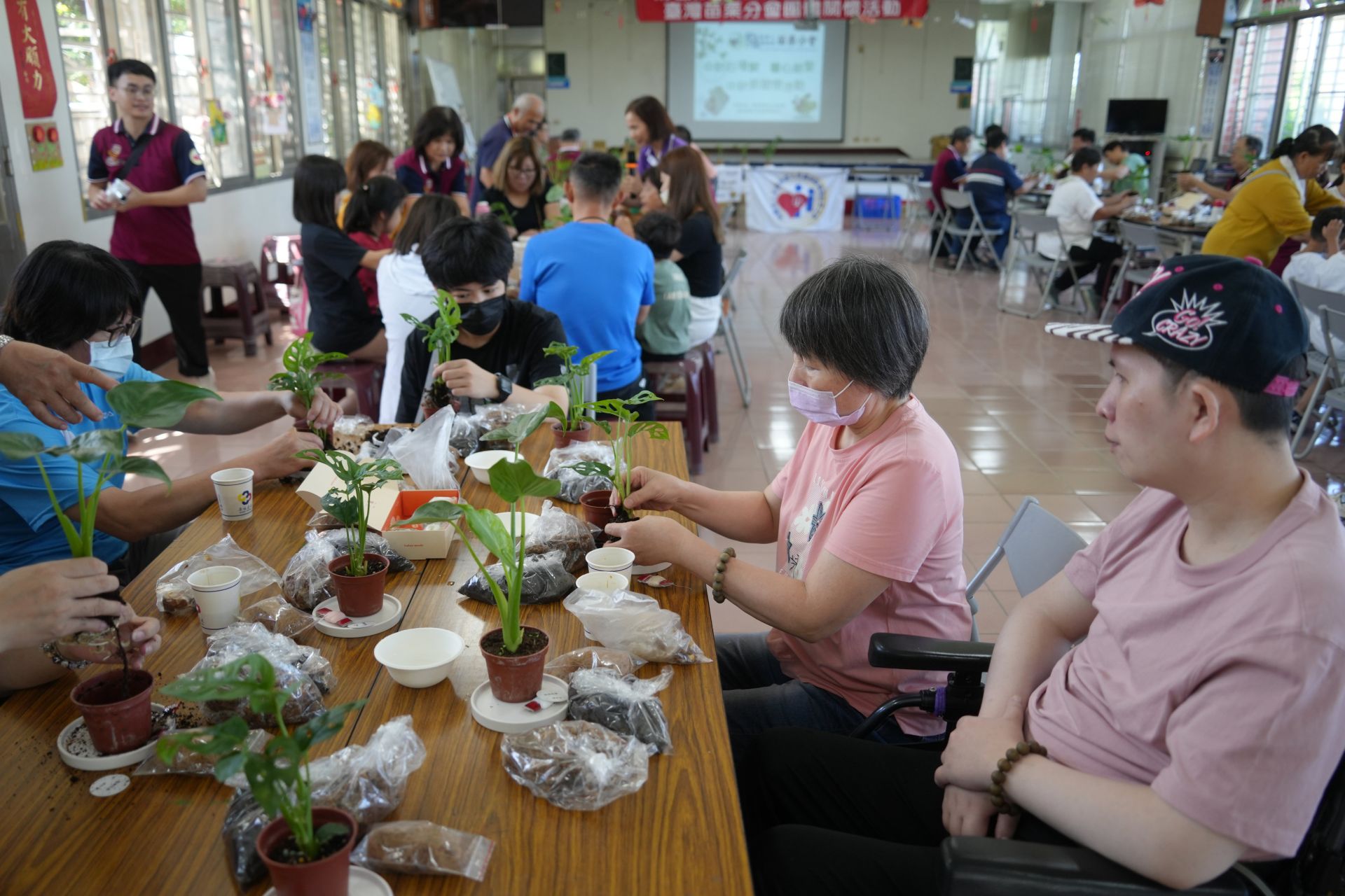 本次活動安排專業講師帶領「綠手指植栽DIY」,馨生人親手將植物重新安置,透過泥土和水草的固定與呵護,象徵著生活中的希望與重生。看著綠意盎然的植栽,彷彿也替自己心靈注入一股清新的能量。分會保護志工王素媛積極連結在地十方圓通寺,貼心提供馨生人米、麵等物資。一對馨生人夫妻也特地從南庄帶來自家種植的老欉柚子與在場的與會者分享,傳遞社會各界的溫暖支持。無論是馨生人彼此間的交談,或是志工、分會人員真摯的陪伴,都讓這段時光洋溢著溫情與力量。