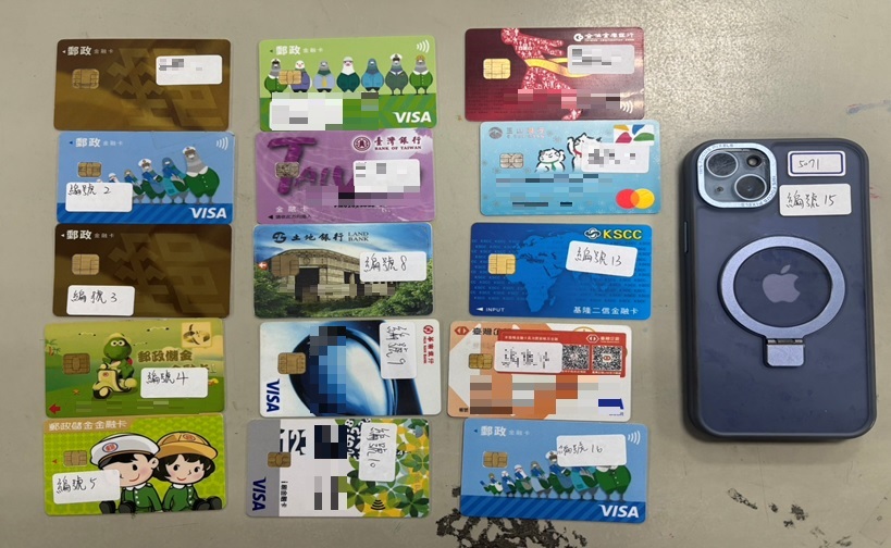 ▲查扣14張金融卡及一支手機。(圖/土城分局提供)