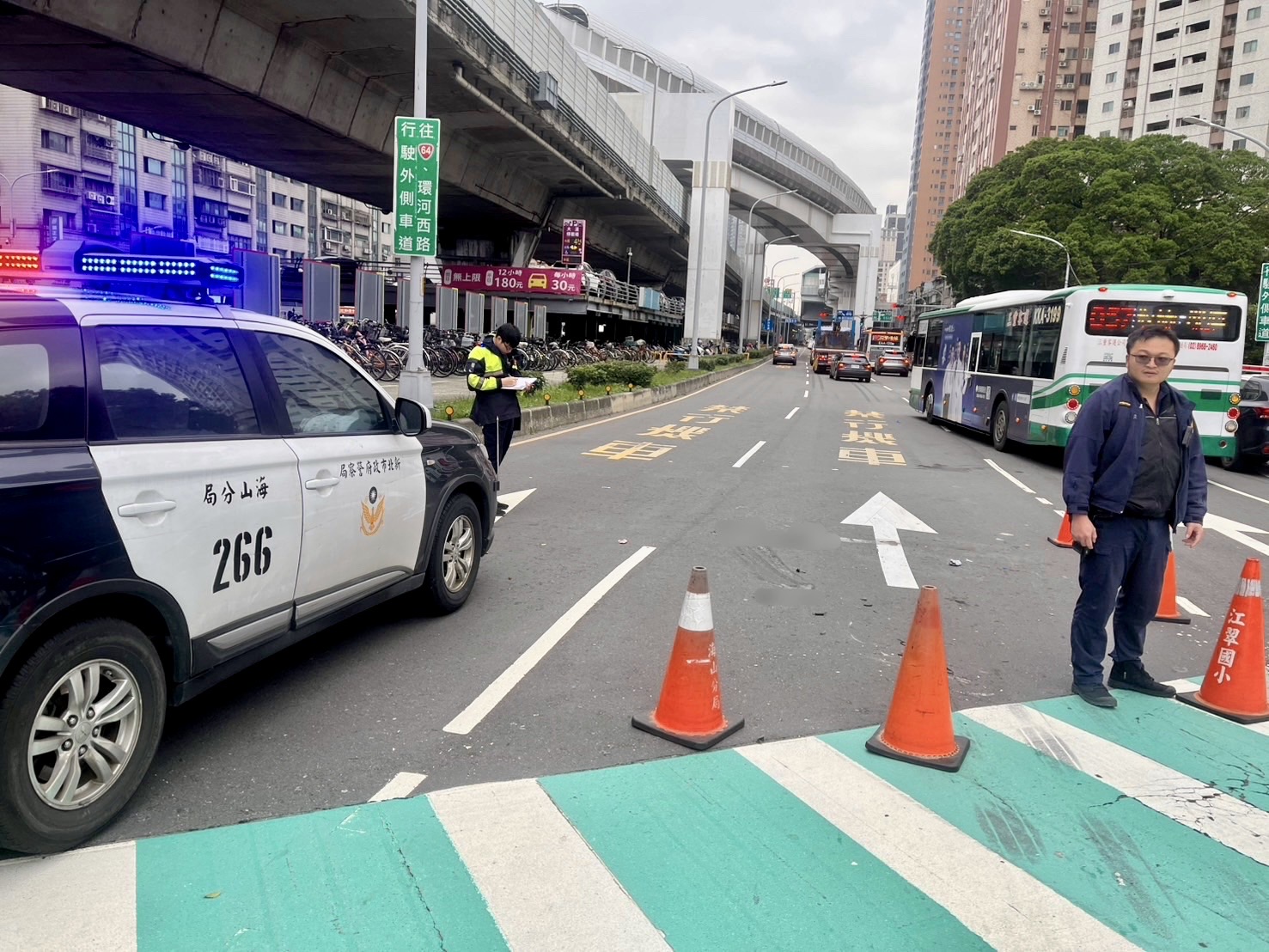 據了解,張男酒測值為0,交通違規部份依違反道路交通管理處罰條例第48條摯單舉發;現場依規定拍照、測繪,並調閱監視器影像,以釐清事故原因。另事故現場已於10時53分排除,恢復往來人車通行。