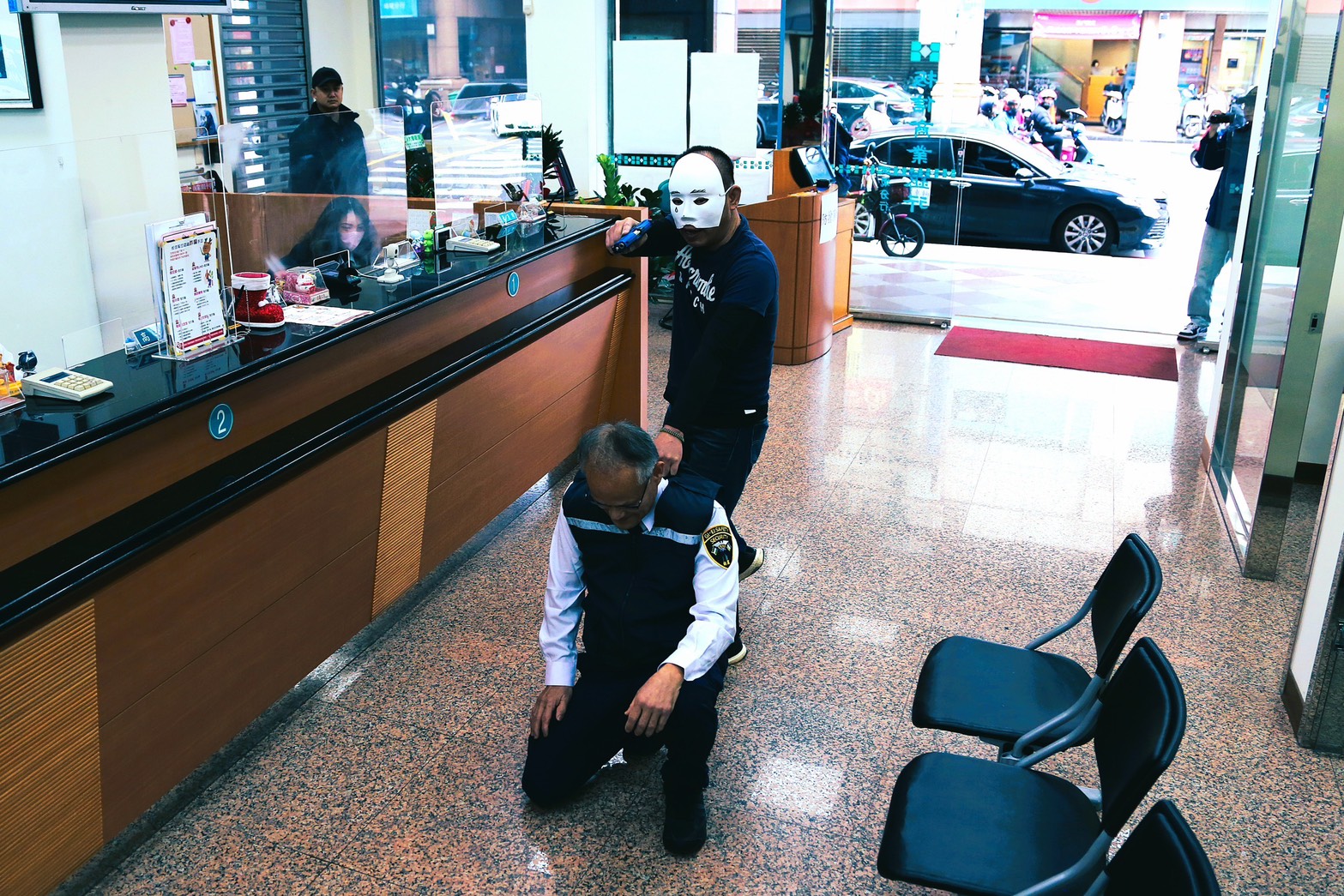新北市海山分局今(3)日下午與轄區板信商業銀行埔墘分行舉行「115年聯合攔截圍捕實警演練」,地點選在號稱銀行一條街中山路,全程運用路口監視器、空拍機等科技設備,掌握歹徒逃逸路線,精準指揮、調度警力,以口袋戰術將歹徒困於封閉場域,並實施心戰喊話,最終棄械投降。