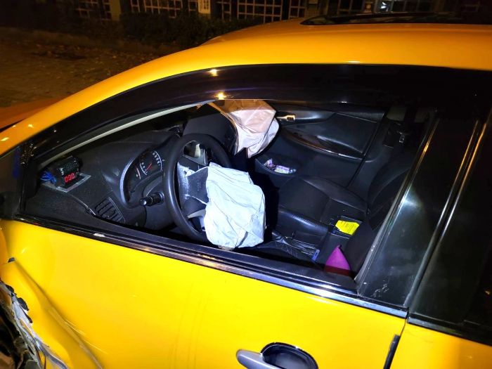 海山分局交通分隊派員到場處理,對陳男酒測值為0,初步檢視無明顯外傷,惟陳男於過程中撞擊車內安全氣囊,致頸部、胸口有不適情形,已立即送往北市臺大醫院觀察,暫無大礙;現場依規定拍照測繪,並調閱監視器影像,以釐清事故原因。