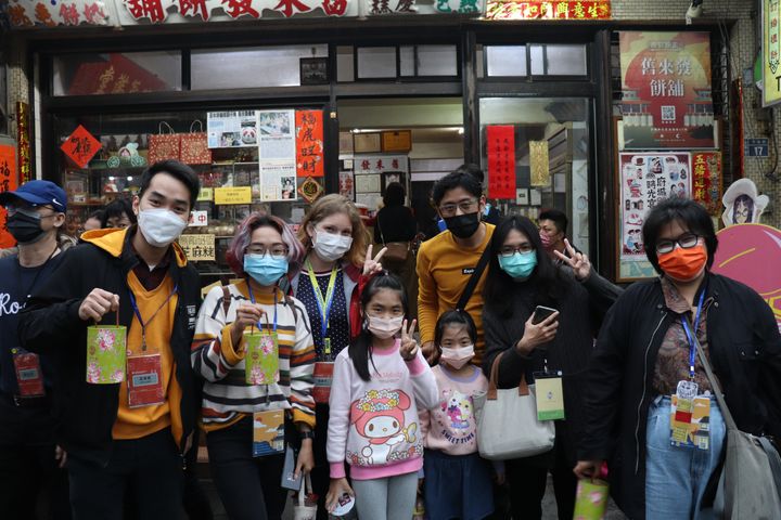 ▼南臺科大境外學生與接待家庭於舊來發合影。(圖/南台科大提供)