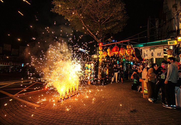 ▲花燈轉換路燈時施放煙火。(圖/南台科大提供)