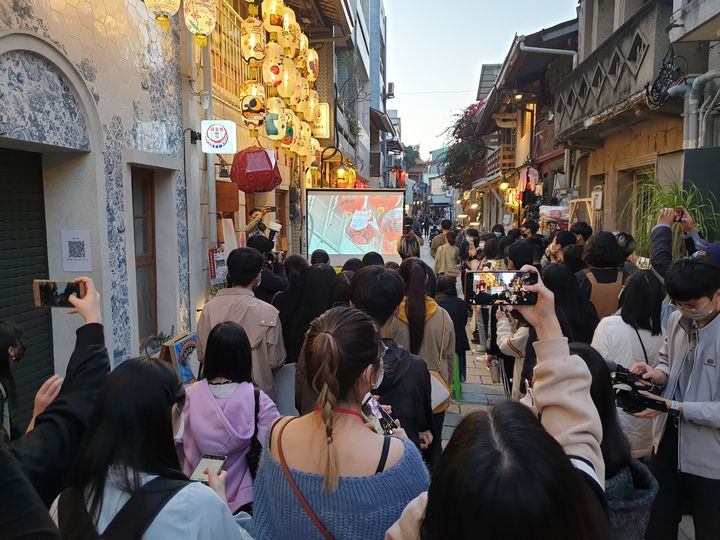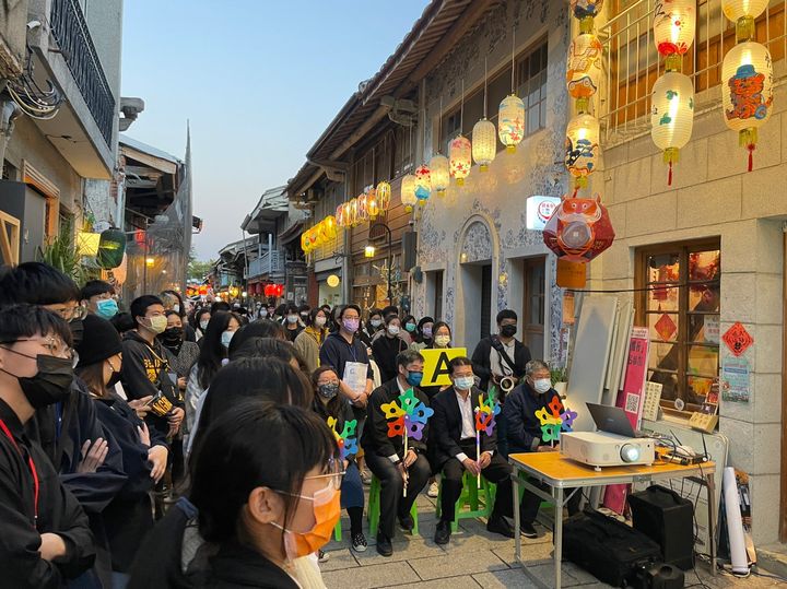 ▲虎年神農街元宵花燈展閉幕式觀看回顧影片的情景。(圖/南台科大提供)