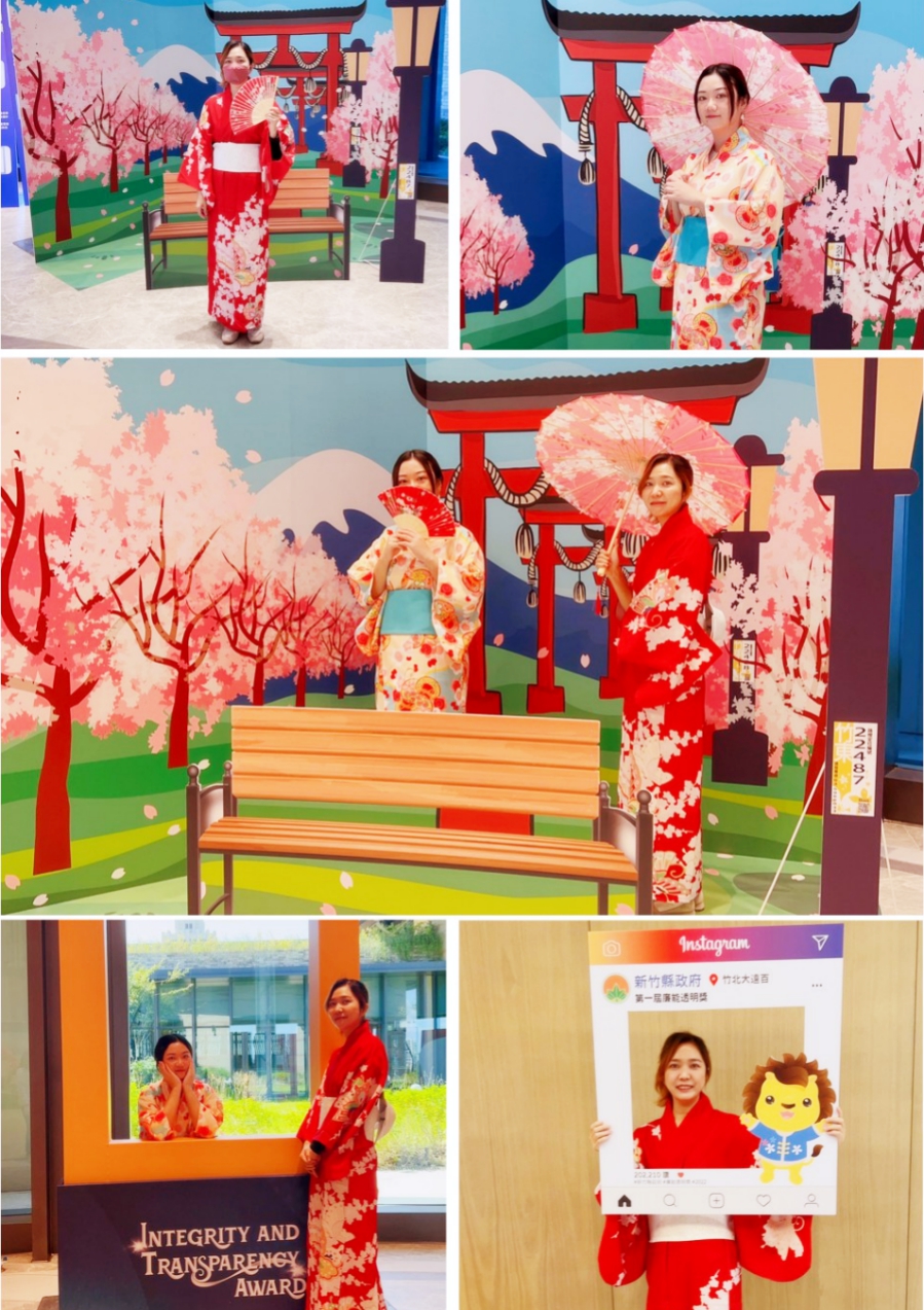 竹縣府政風處表示,此次「廉能透明獎」成果展示活動, 結合時下年輕人最流行的網紅元素,打造多處互動式拍照打卡點,藉由FB或IG等網路媒介之渲染力量,將此次活動廣為宣傳。同時,配合鳥居、櫻花意象之日式風格背板,周末提供和服體驗活動,讓民眾彷彿置身日本,作為疫情解封後出國旅遊之暖身。