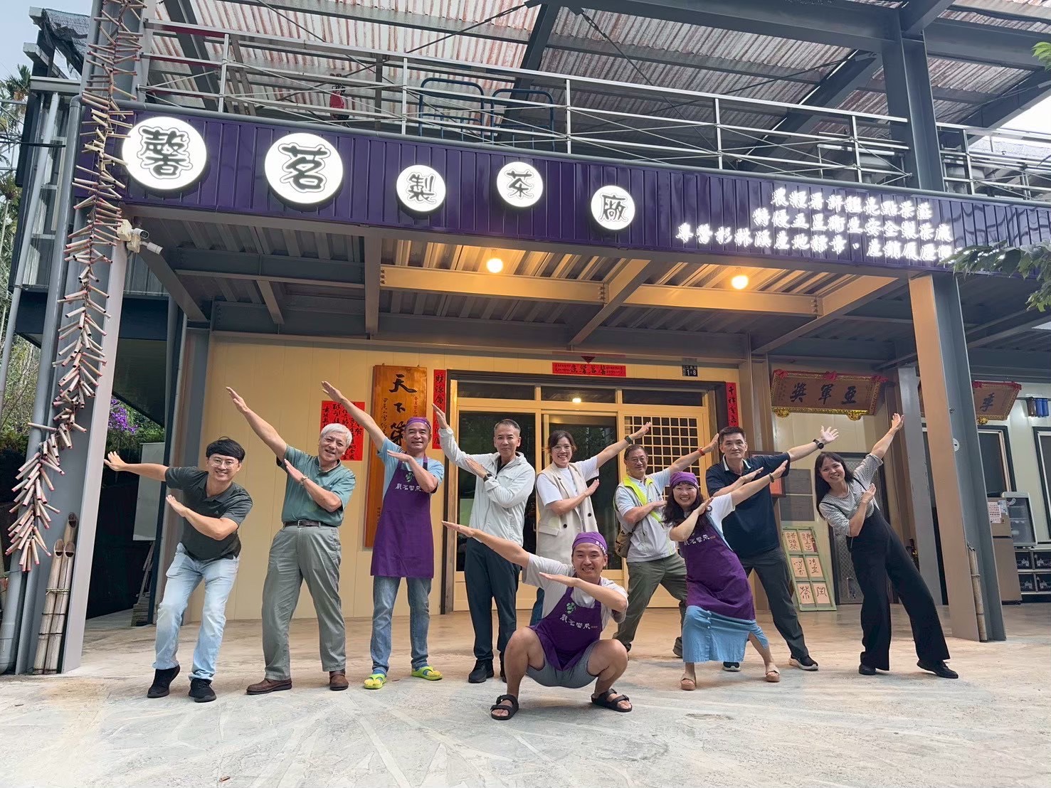 照片3-2025衛生安全製茶廠複審馨茗響茶頭木一家與評委合照(手勢是為台灣茶衝刺)