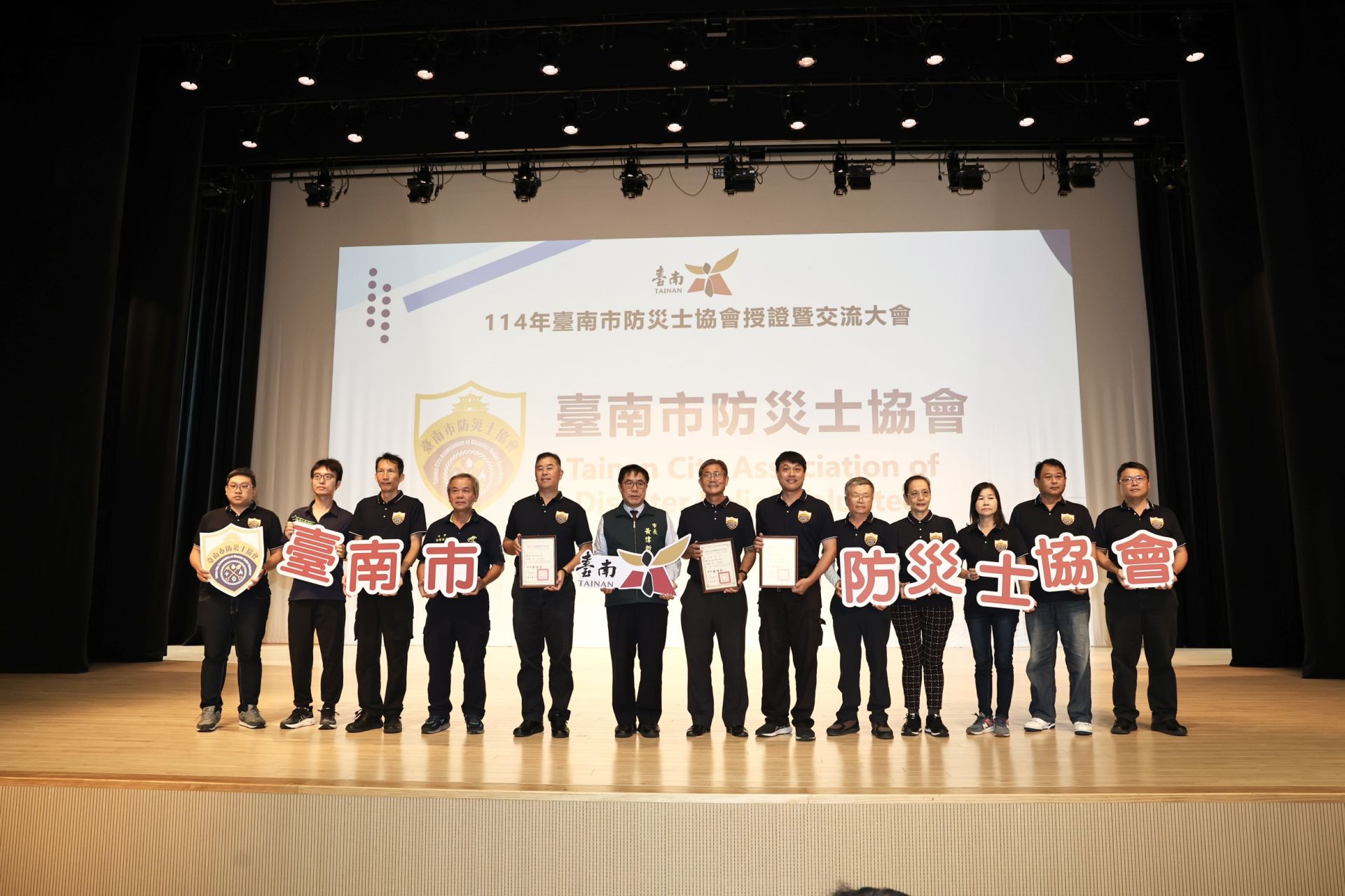台南市政府與成功大學防災研究中心今(25)日在永康社教中心共同舉辦「台南市防災士協會授證暨交流大會」,逾百位設籍台南市防災士踴躍參與。會中由市長黃偉哲為首屆防災士協會理事長侯俊彥頒發證書,並公開表揚37位績優防災士,充分展現台南市推動防災士制度的積極成果與發展。