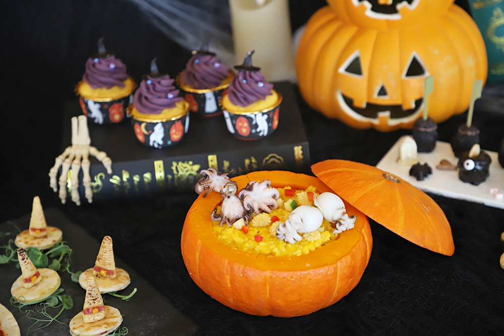 和逸飯店‧台南西門館Cozzi KITCHÉN餐廳於10月25日推出「魔法萬聖晚宴」,今年以「魔法學院」為主題,精心打造30款以上萬聖限定料理,並以自助式Buffet形式登場。此次主廚化身暗黑魔法教授,運用骷髏、南瓜、幽靈等經典元素入菜,其中「費雪教授的暗黑魔法義大利麵」,義式肉醬拌煮墨魚麵,巧妙點綴「眼球」造型蛋料理,搭配特製「骷髏手掌」造型餅乾,宛如暗黑魔法實驗。整顆南瓜化身為「魔法盅」,盛裝金黃燉煮的南瓜燉飯,另外還有「骷髏起司焗通心粉」,以濃郁焗烤結合骷髏頭起司,驚悚又逗趣。12歲以上成人每位1,380元,7至11歲孩童每位750元,3-6歲幼童每位350元,以上費用另加10%服務費,詳情請洽Cozzi KITCHÉN餐廳06-702-6699。