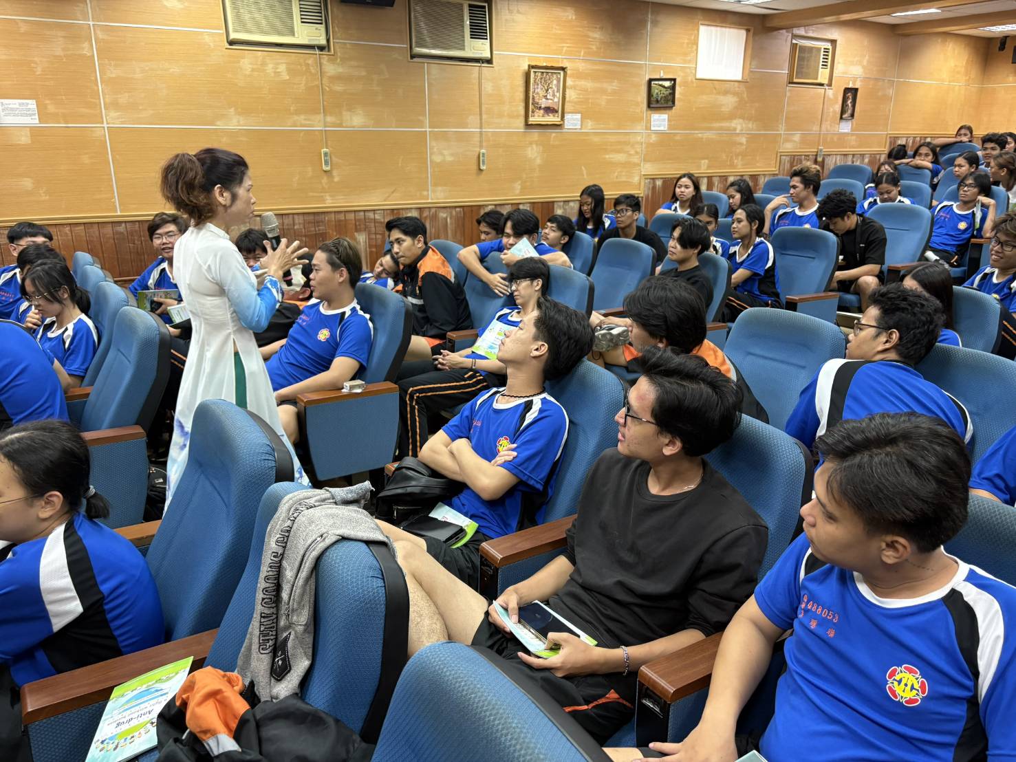 南市警局講師表示,詐騙集團常利用社群媒體平臺投放詐騙廣告引誘民眾上鉤,針對常見詐騙手法「假網路購物詐騙」、「假交友詐騙」等進行說明,並強調近期詐騙集團常以「高薪打工」為由,誘使學生誤當詐欺車手或出借金融帳戶,成為人頭帳戶,特別呼籲學生切勿因貪圖打工報酬而以身試法,成為詐騙共犯。此外,警方也提醒外籍學生要妥善保管護照、居留證及金融帳戶等重要證件,不隨意交予他人,以防遭人口販運或詐騙利用;如遇交通事故、治安問題可撥打110報案,若有疑似詐騙情況,亦可撥打165反詐騙專線尋求協助。