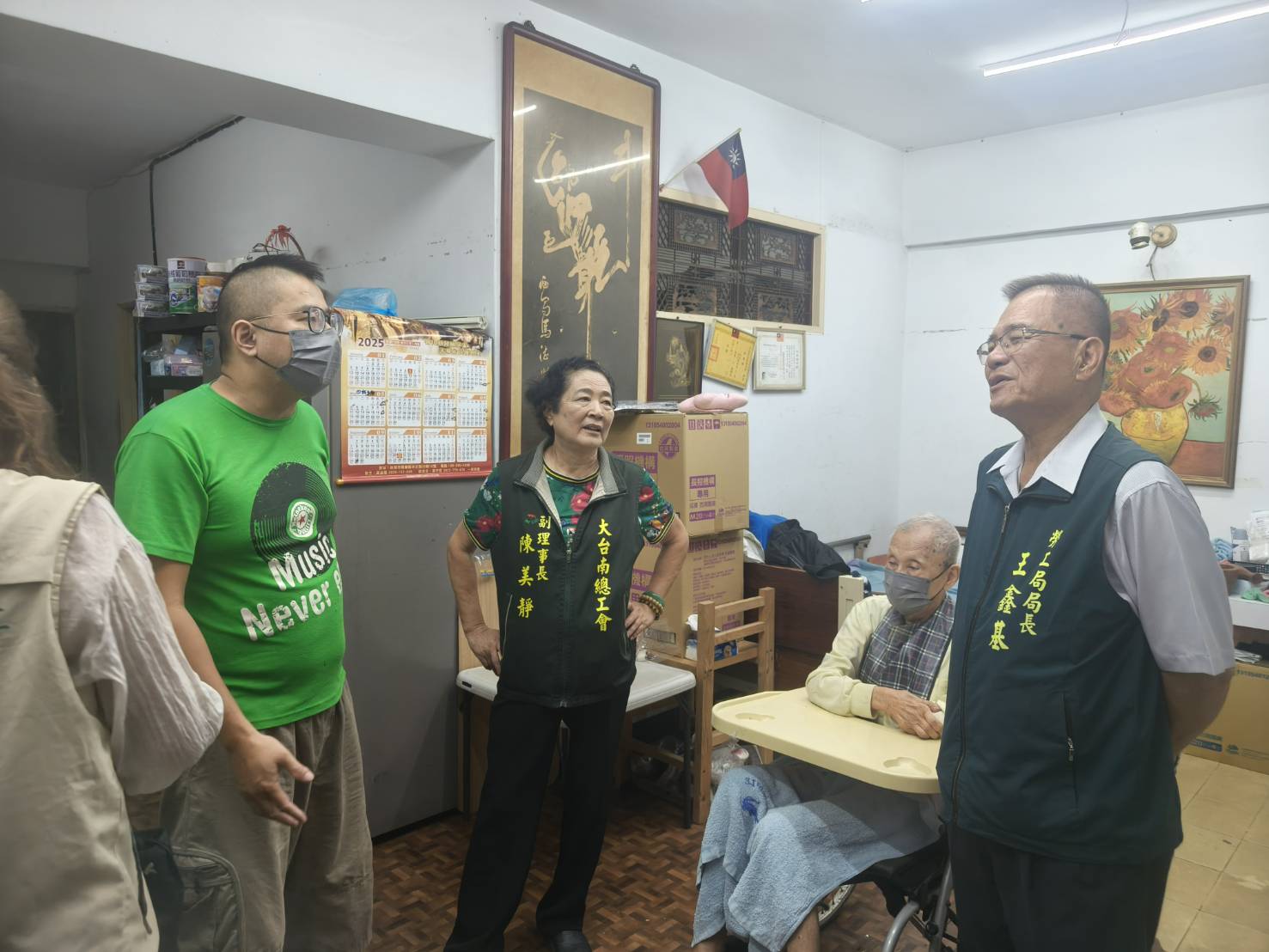 最後一站則是麻豆區謝姓勞工,今年5月通勤途中因閃避腳踏車發生車禍,造成頸椎脊髓嚴重損傷,需長期臥護理之家。案主原本身心障礙者,現又需支付護理與醫療費用,加上父親住院開銷,家中經濟極為沉重。