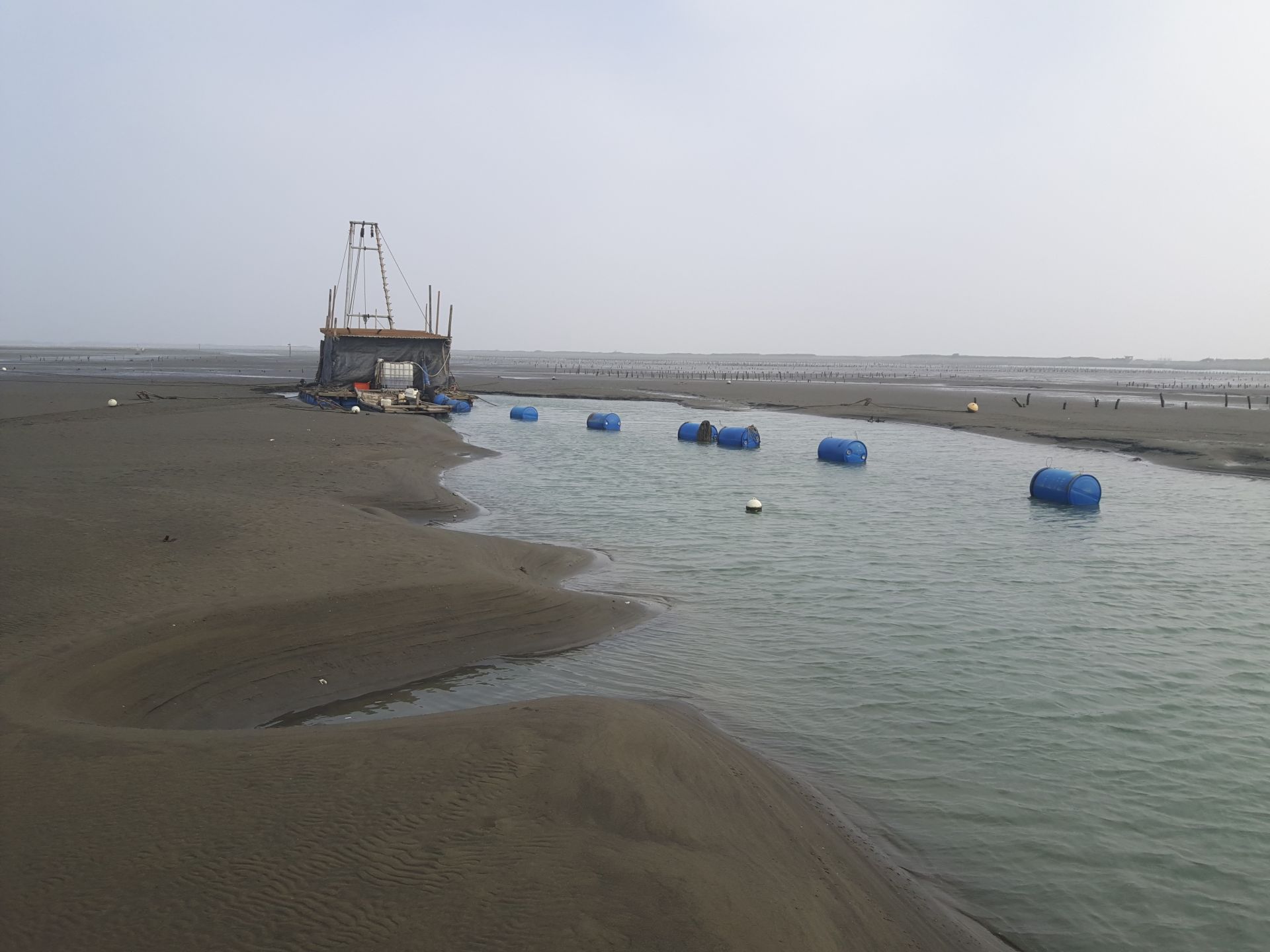 ▲七股潟湖疏濬抽砂至沙洲養灘。(水利局 提供)