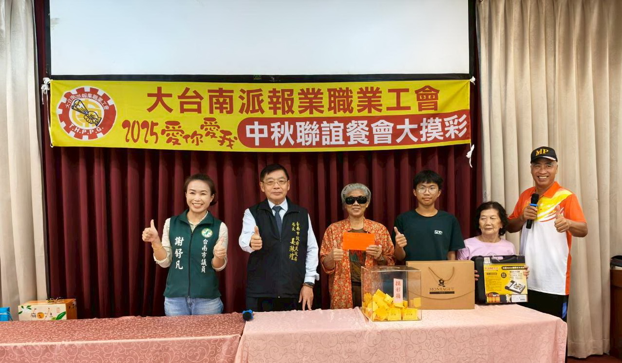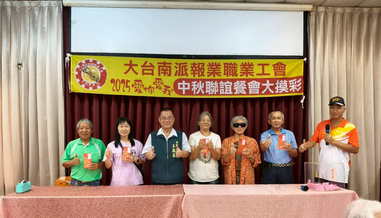 送報生披星戴月,風雨無阻,全年無休!大台南派報業職業工會今天利用中秋節前夕在田媽媽鵝肉美食餐廳,舉辦「2025愛你愛我中秋親子聯誼大摸彩活動,包括立委郭國文、市議員陳昆和、謝舒凡、楊中成、尤榮智、民政局長姜淋煌、勞工局長王鑫基、農業局長李芳林、保育科長朱健明、市場處代理處長林士群、前台南市副市長顏純左、國民黨台南市黨部書記長洪菽珮等,為200多位大台南地區的送報人員加油打氣,場面熱烈溫馨,提前歡度中秋佳節。