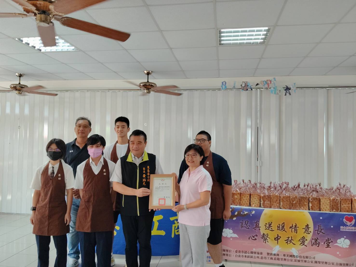 台南市認心關懷協會和慈幼工商烘培科偕同專美國際股份公司,在中秋佳節前夕聯合台南市東區公所、自強里、莊敬里、關聖里、富強里等4里,在今(4)日早上10點30分,在自強里活動中心,舉辦捐贈中秋月餅、土司等活動,讓東區上述這4里100多戶的中低收入戶弱勢家庭,歡渡一個充滿了愛與溫暖的中秋佳節。