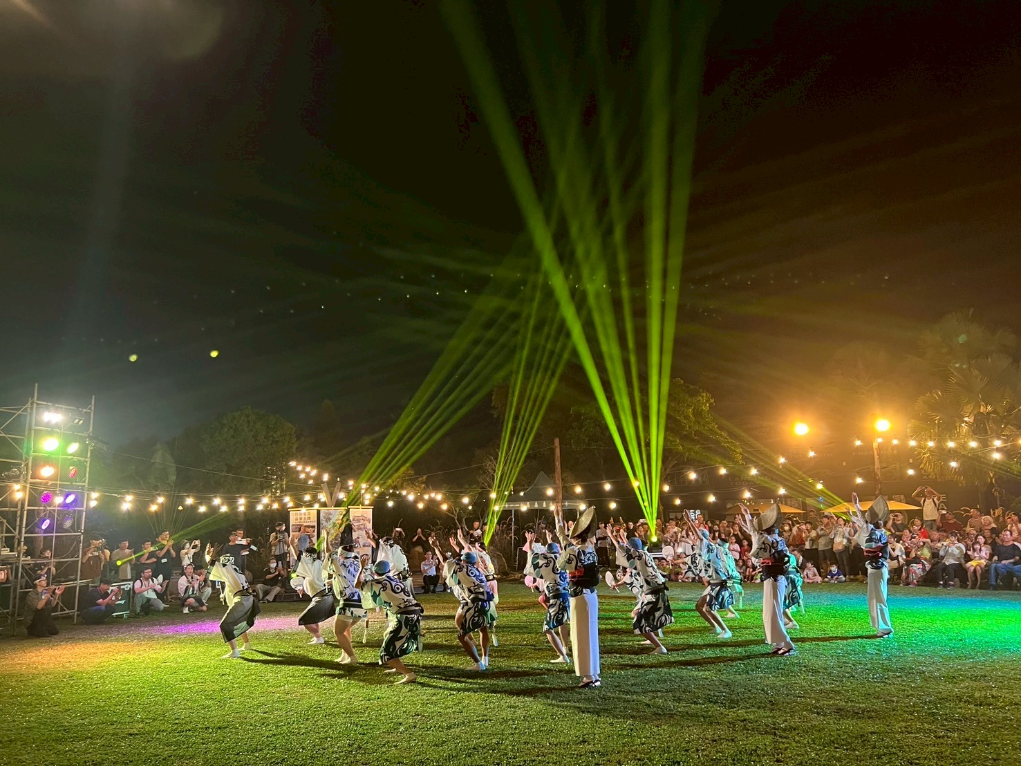 德島阿波舞團首日卓蘭場在壢西坪休閒農業區登場,揭開「2025農村體感藝術祭」序幕