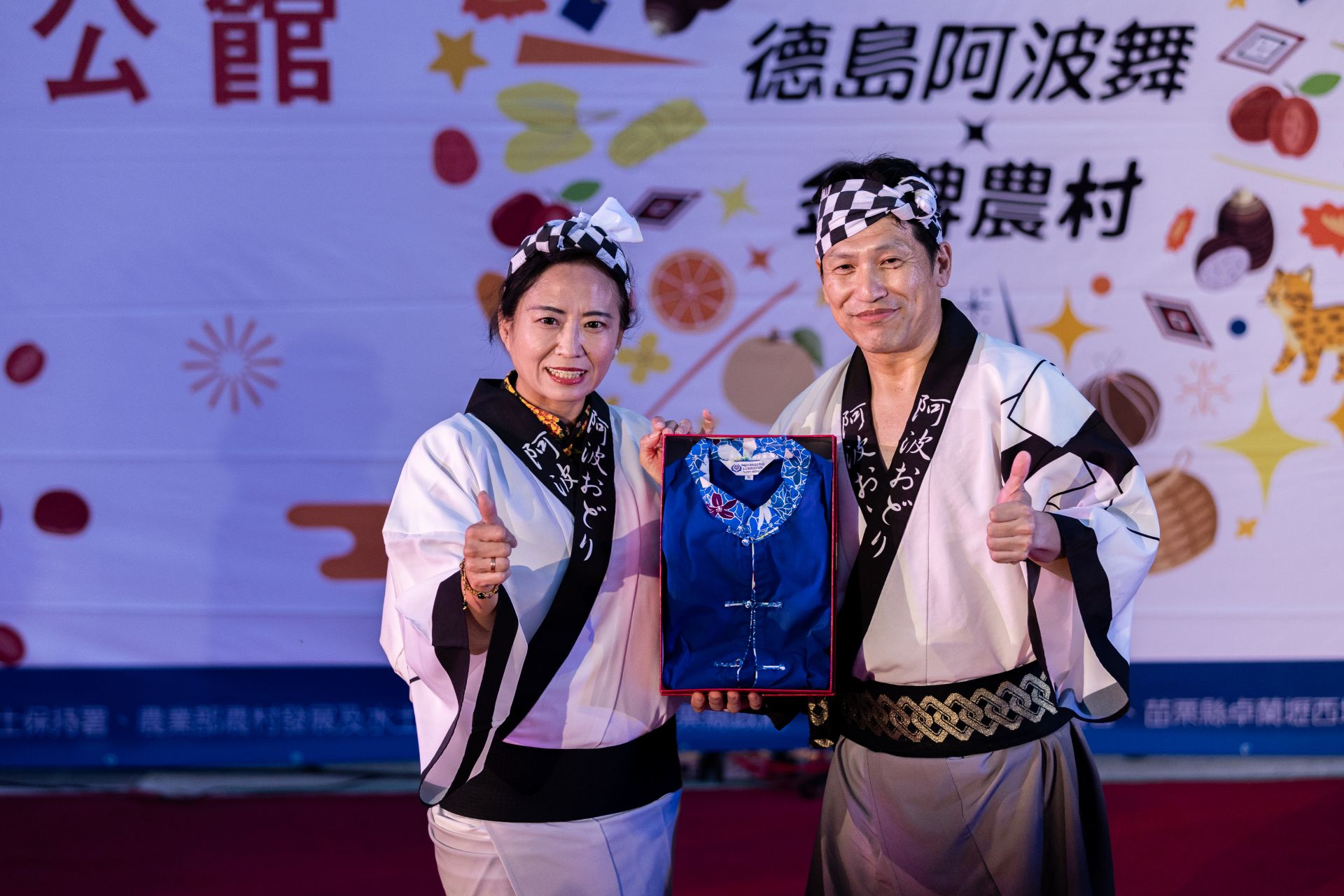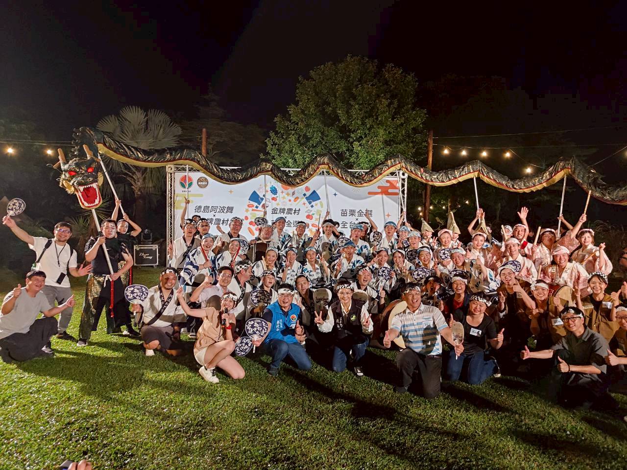擁有四百年歷史的日本德島阿波舞,今年度首度跨海來台,在苗栗壢西坪、公館黃金小鎮、台中清水三地連續三天出演。舞者身著傳統服飾,隨著鼓聲昂揚起舞,燈光與煙霧交織,台上舞姿奔放,逾十八萬人欣賞,現場宛如國際嘉年華,熱力不減,也為金牌農村行銷推廣留下深刻紀錄。