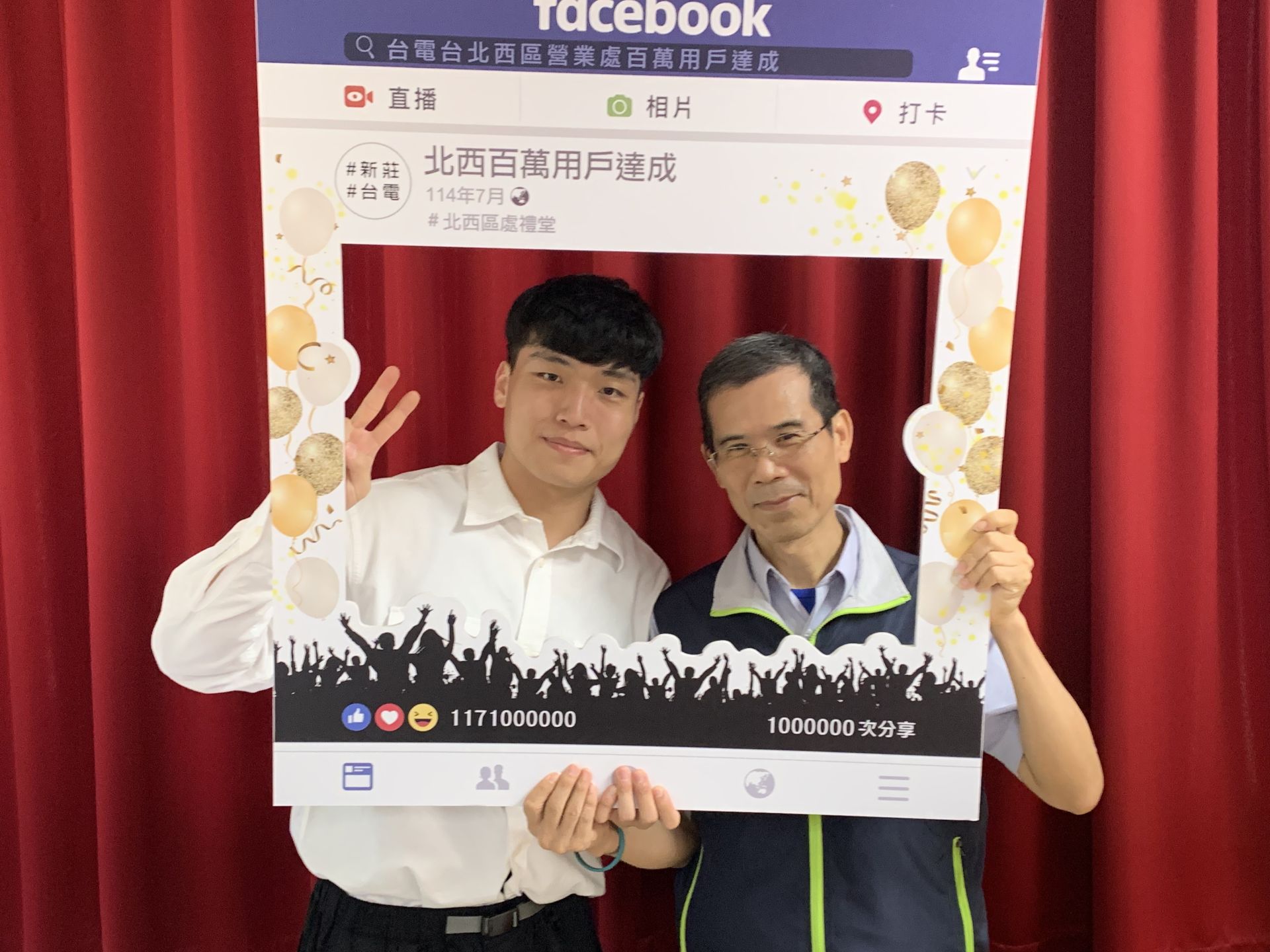 ▲台電父子檔慶賀北西區處用戶數突破百萬。(圖/台電台北西區營業處)