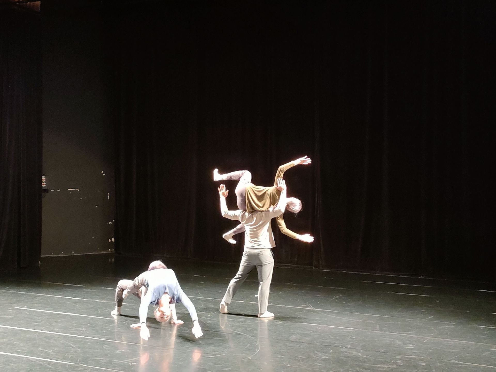 《低著的世界》由台灣編舞家黃文人創作,靈感源於現代人低頭滑手機的日常現象,透過驚人密度的肢體語彙、音樂與燈光交織,邀請觀眾重新思考「低頭」與「連結」的關係。該作品早在2017年獲得「舞躍大地舞蹈創作金牌獎」,2024 年更代表台灣登上愛丁堡藝穗節舞台,從3,000多個節目中脫穎而出,榮獲 Broadway Baby 頒發的「The Bobby Award」,被譽為「Best of the Best」。