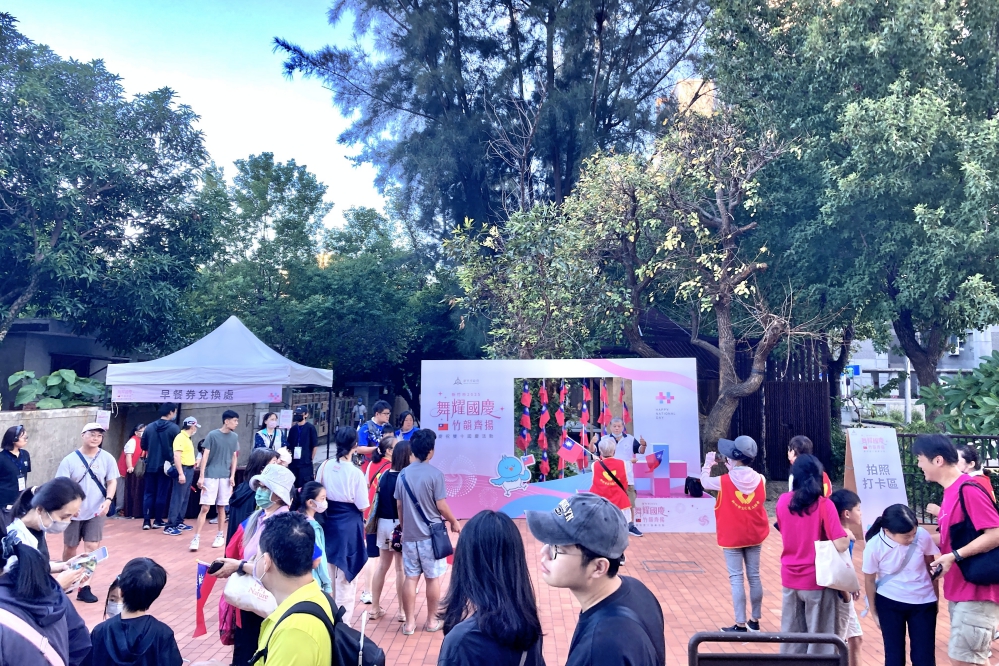 竹市府社會處補充,現場民眾凡配戴國旗元素並填寫問卷,即可獲得限量紀念旅行包乙份;上傳活動照片並打卡者,還可兌換限量早餐券。此外,活動區內設有15攤早餐市集,並推行環保餐具租借制度,體現市府推動綠色永續的理念。