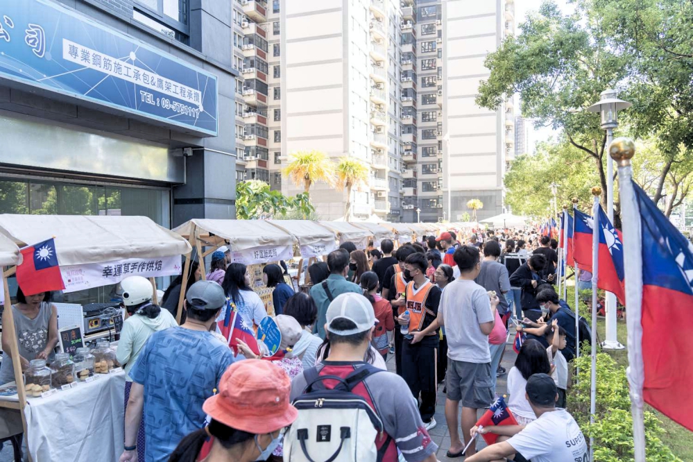 ▲新竹市府今(10/10)日上午7時於金城一路「將軍村」舉辦「舞耀國慶、竹韻齊揚」國慶升旗典禮,活動區設有15攤早餐市集,吸引許多民眾前來,尤其係具有眷村特色美味的攤位前更是人潮湧現。