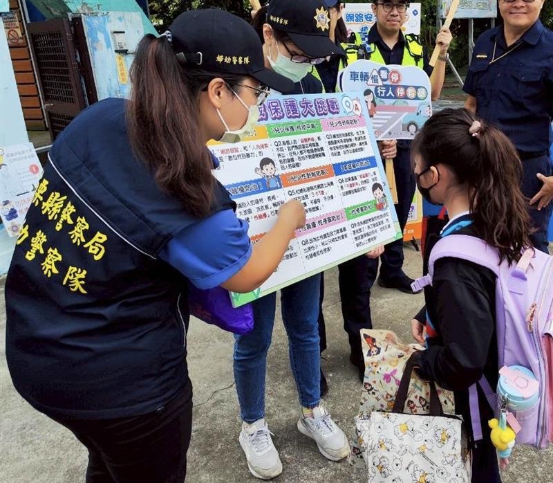另外;教育處校園宣導活動,讓孩子們學習正確交通觀念:以安全過路口為核心, 停:先停下來,確認安全再行動。看:注意左右來車與周邊環境。聽:留心車輛喇叭或周遭聲音。想:判斷是否安全,確認後再通行。