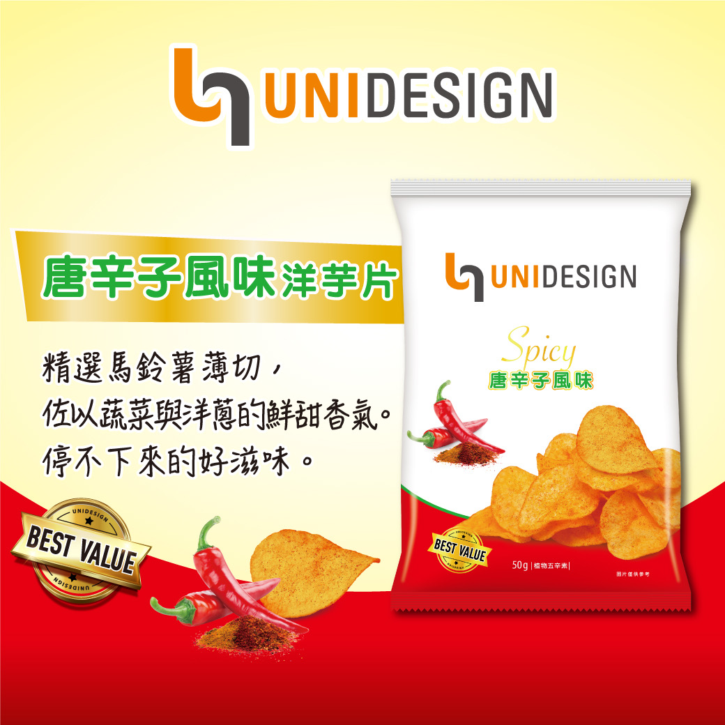 統一集團生活品牌「UNIDESIGN」自發展口罩、發熱衣、紙巾等日用相關產品,銷售大獲好評後,乘勝追擊,以經濟實惠的價格結合高品質體驗,拓展至食品品類,首波推出「UNIDESIGN洋芋片系列」,正式打響洋芋片零食市場前哨戰!