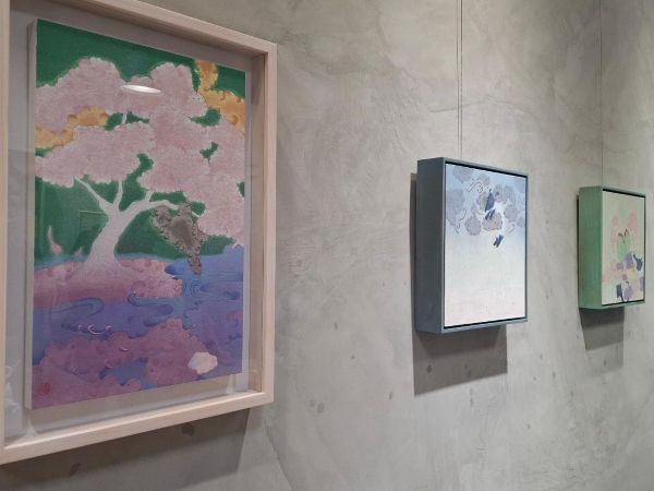 藝術家吳秉頤透過膠彩獨特的美感,並加入自身的生活轉變成創作養分,透過看見雲的形態變化,使其與靈獸相遇,也象徵人生的無常與流動,從而在其中找到屬於自己的安慰與平靜。畫面中,藉由「雲朵」、「圓點」的形式來呈現能量傳達與變化,並結合色彩變化來反映出正負能量,這不僅是視覺元素,更是能量的符號,代表情緒的波動、內心狀態的轉換,並透過色彩的冷暖、明暗,去映照人類情感的頻率。雲象徵無常與流動,而靈獸則是內心的守護者,牠們一同構築出一種溫柔而療癒的心靈風景,期望藉由此意象來隱喻現代社會的可能所需來用正念精神去彌補