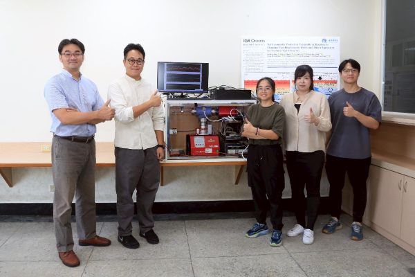 圖2:國立中山大學海洋科學系教授黃蔚人(左一)帶領研究團隊,以平衡器進樣式質譜儀針對湧升區進行高時間解析度的碳循環觀測,揭示颱風促進海洋的生產力與二氧化碳吸收能力,成果登上國際期刊。