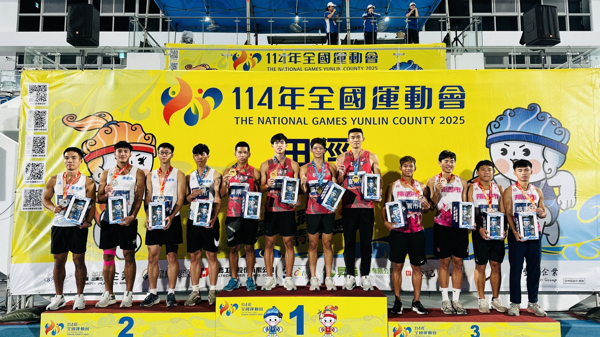 令人振奮的是,臺南田徑代表隊男子4×100公尺接力也在今日賽事中表現亮眼,以39秒86的成績奪下金牌,展現流暢默契與強勁節奏,完美詮釋團隊合作的極致速度,再度讓「臺南速度」席捲全場。男子田徑十項全能運動,臺南市選手王晨佑以總分7314,突破上一屆自己的紀錄7215,締造四連霸紀錄,非常值得喝采!