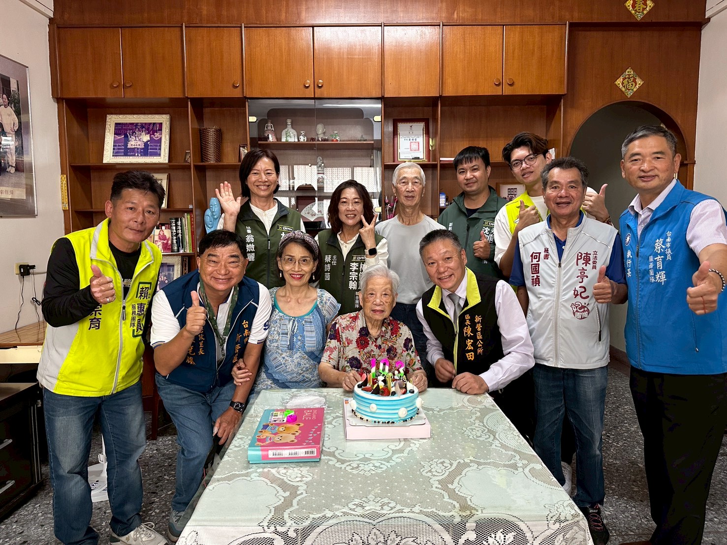 「百歲人瑞鬚如雲,經歷風雨笑團圓。桃李爭輝青春在,福壽雙全映晚年。」,百歲人瑞的智慧與經歷,象徵著生命的長久與富饒,無論年歲如何,依然充滿活力與希望,重陽節將至,新營區公所於今(21)日上午由區長陳宏田代表市長黃偉哲帶領公所團隊,並偕同民意代表及里長前往百歲人瑞家中進行慰訪,除致贈臺南市政府準備的重陽禮金1萬元,烘碗機及市議會準備的電鍋及立扇,同時也代贈總統府敬老狀及金鎖片等賀禮,為人瑞送上真摯溫暖的祝賀之意。