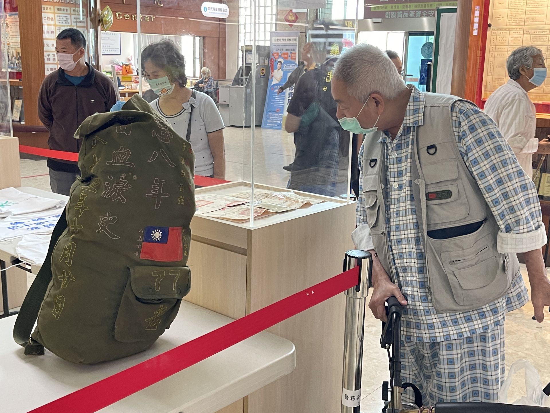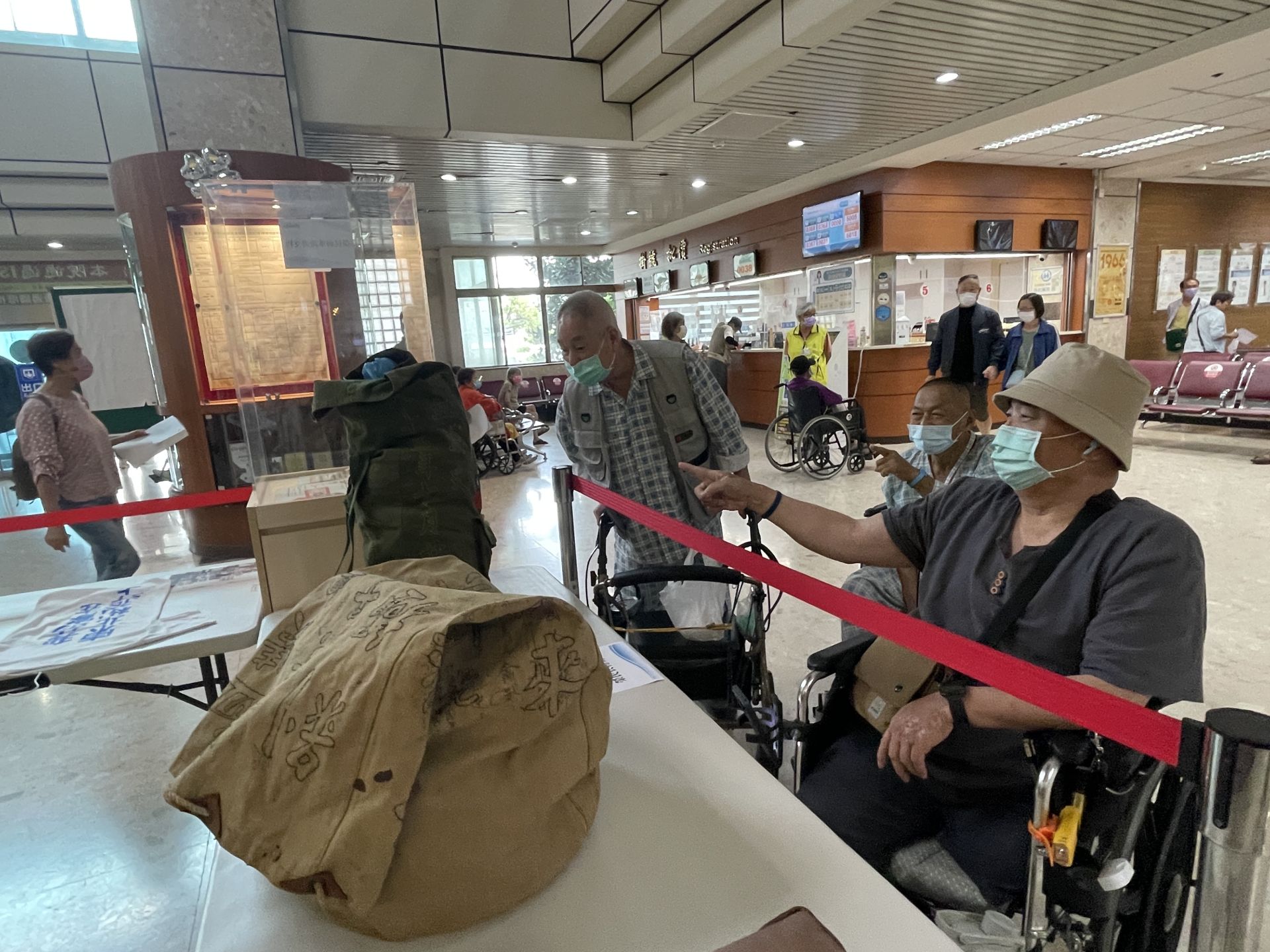 ▲▼病友及家屬與住民駐足欣賞榮民文物展,細看早期軍用服裝與珍貴史料,回顧榮民奮鬥歷程。(圖/高榮臺南分院提供)