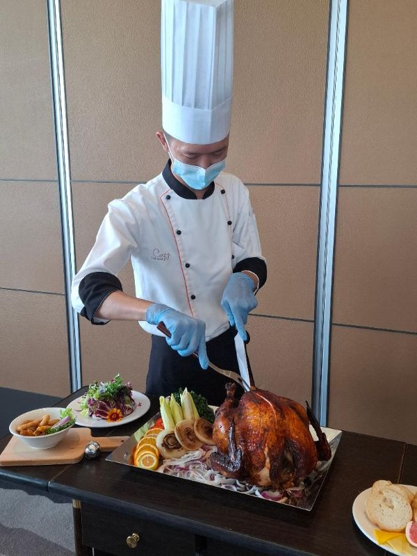 11月1日至12月25日限期登場,由主廚團隊嚴選的6公斤異國火雞,歷經香料詩篇般的醃製,在爐火中淬煉出金黃色澤。刀鋒落下的瞬間,空氣中迸發香料與肉汁的交響,佐以紅酒醬汁的醇厚與蔓越莓的靈動香甜,彷彿將整個秋天收封存於餐盤。