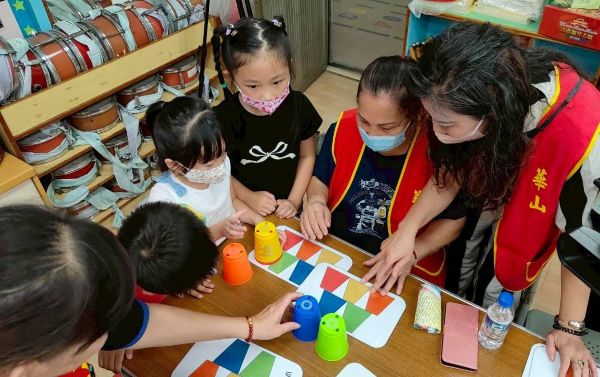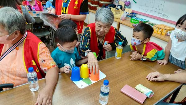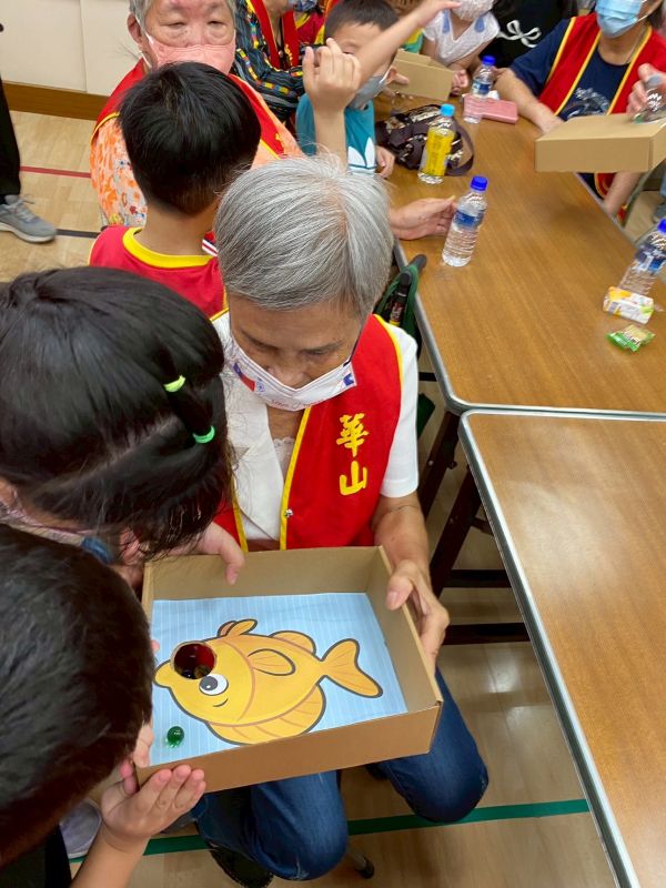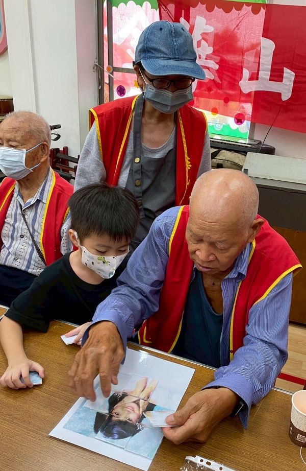 76歲獨居、經濟困難的施阿嬤,照顧因工安意外導致下半身癱瘓的丈夫逾四十年,年輕時阿嬤一人扛起撫養家庭的重擔,一年前連續經歷喪夫和喪子之痛,久久無法從悲痛中走出。這幾年因為有華山基金會提供定期訪視陪伴及物資,成為支持阿嬤走下去的力量。今日特地邀請阿嬤到現場,由高雄市私立聖文幼兒園李慧菁園長帶著小朋友與阿嬤及長輩們互動,一起組隊闖關進行失智遊戲闖關競賽,提前共度重陽節,讓長輩感受子孫滿堂其樂融融的氣氛。