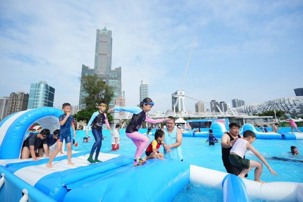 圖說3:現場設有深受孩童喜愛的親水氣墊遊具(位於高雄港21號碼頭停車場)。
