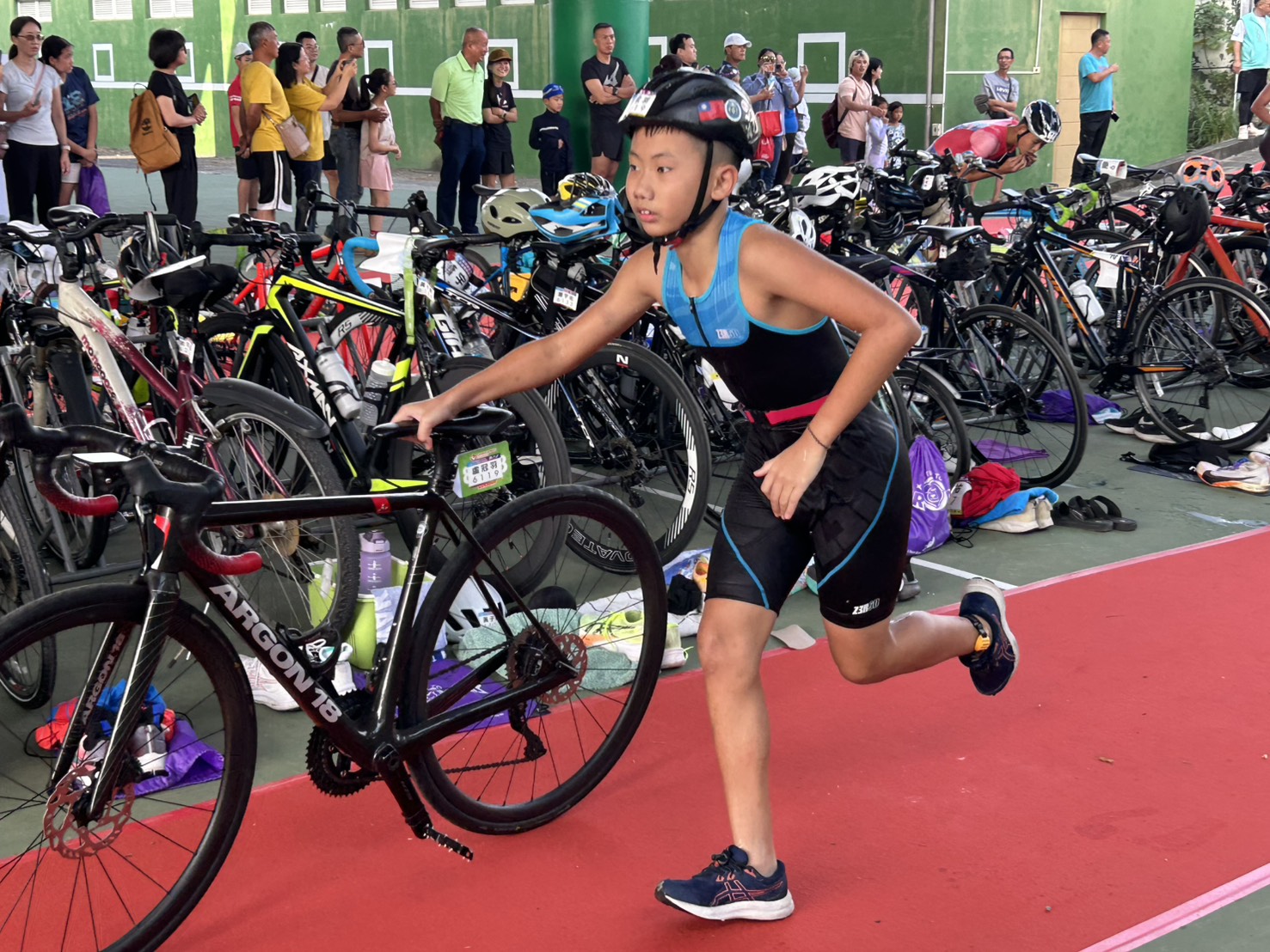 鐵人三項主委孫永吉說,這是一種結合游泳、自行車與長跑三項連續進行的耐力型運動。參賽者必須依序完成三項賽事,從游泳開始,接著是騎乘自行車,最後以跑步作結束,中間無休息時間必須連續高強度持續運動約40分鐘。比賽的成績依總完成時間計算,包含轉換區的時間。更期望更多小朋友可以挑戰自己的能力,達成自我實現的目標,享受玩運動的樂趣!