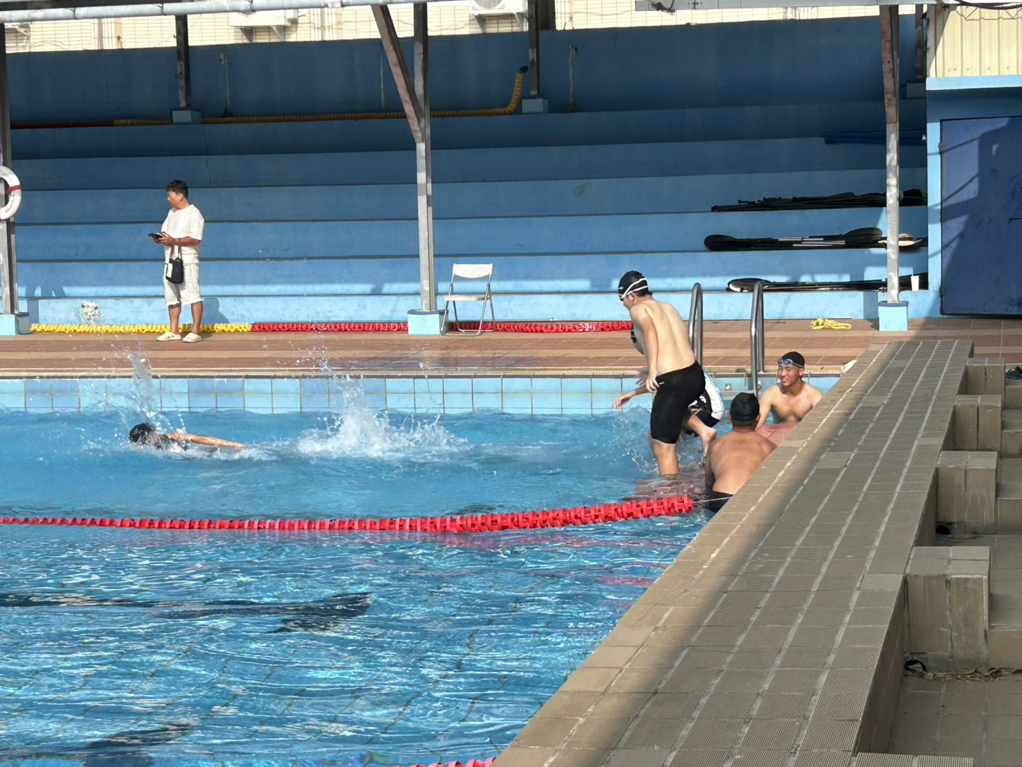 ▲鐵人三項第一關游泳。(記者黃雋淮攝)
