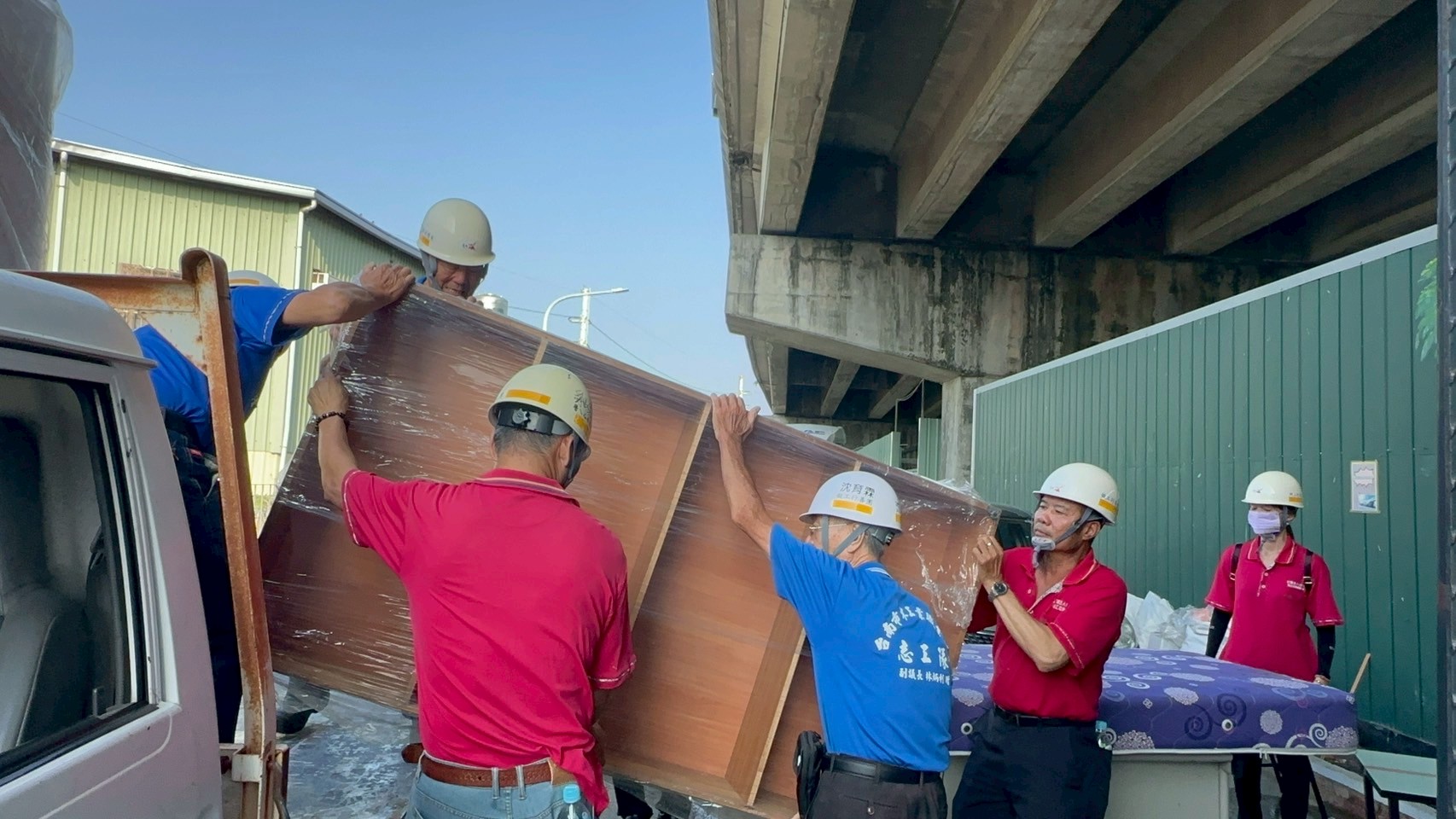 臺南市政府秉持市長黃偉哲推動的「希望家園」理念,積極透過跨單位合作與公私協力,協助弱勢家庭修繕受損住屋,讓每一個需要幫助的市民都能「安居有望」。市府勞工局結合「做工行善團」志工力量,以專業技術化作關懷行動,即使在光復節連假期間仍不休息,木工及電氣工會志工前往關廟區修繕,另二手倉庫則有志願服務協會梁志男理事長與夫人林佳香、陳來發及苑秀芳攜手協助整理搬運,並由木工志工載運整理好之床組、衣櫥、桌椅等家具送給案家,為弱勢市民修屋補漏,傳遞城市溫度。市長夫人劉育菁今日也親送官田菱角等餐點,向辛勤的志工們表達感謝與關懷,市議員陳皇宇、市政顧問盧子宏也帶飲品一起關懷。