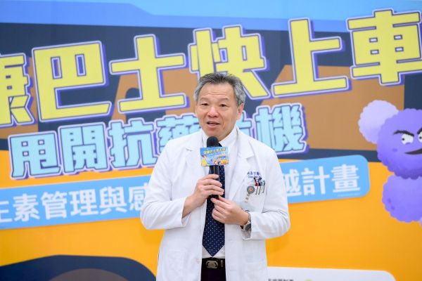 「對抗抗藥性蔓延已刻不容緩。」高醫戴嘉言副院長指出,隨著台灣將邁入超高齡社會、醫療量能持續緊繃,抗藥性問題更加嚴峻。今年高醫響應 WHO 世界抗生素週主題「立即行動、守護當下、保障未來」,即日起一連五天展開「健康巴士快上車,甩開抗藥危機」展覽,以寓教於樂方式提升大眾對「正確用藥」與「預防感染」的認識。他也承諾,無論是疫情或抗藥性挑戰,高醫身為大學附設醫院及醫學中心,秉持教學、服務、研究的理念,將持續站在醫療前線,推動抗生素監控與衛教,守護永續醫療。