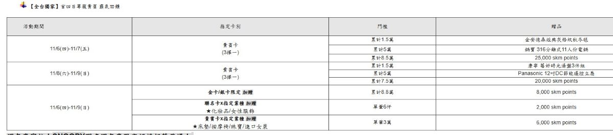 百貨最好用的點數「skm points」點數用途也全面升級,除了可兌換Snoopy集點送、美妝/3C/家電/美食等萬項夯品之外,此外更規劃百項爆品讓會員輕鬆兌換,從BOBBI BROWN維他命完美精華、MAKE UP FOR EVER HD SKIN粉無痕柔霧空氣粉餅,到香草集守護精油滾珠、CLE DE PEAU精萃光采卸妝油+潔膚皂,還有左營店限定11月6日-11月13日百點輕鬆兌每日限量好康禮,全面放大點數價值,打造回饋最超值的週年慶購物新體驗。