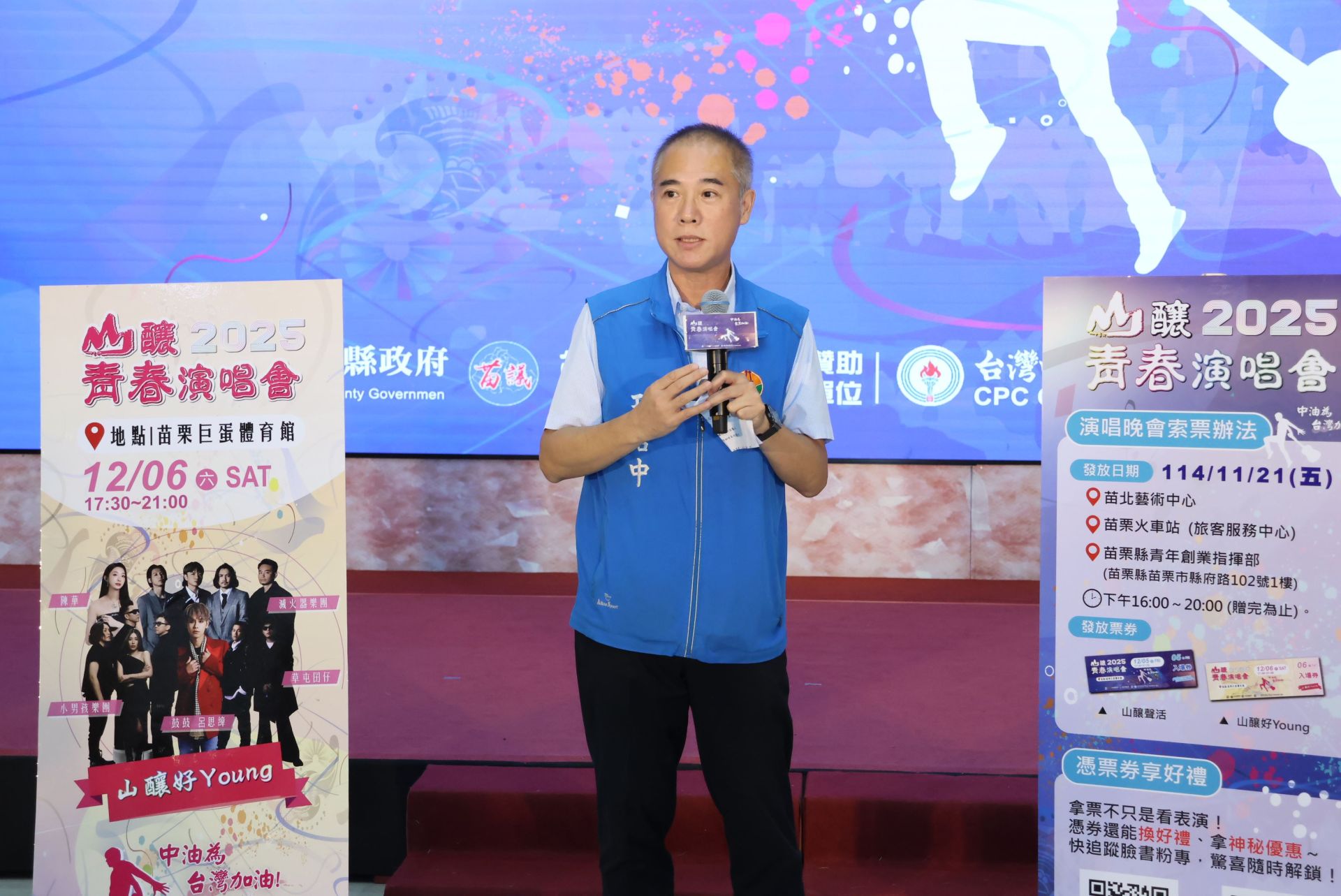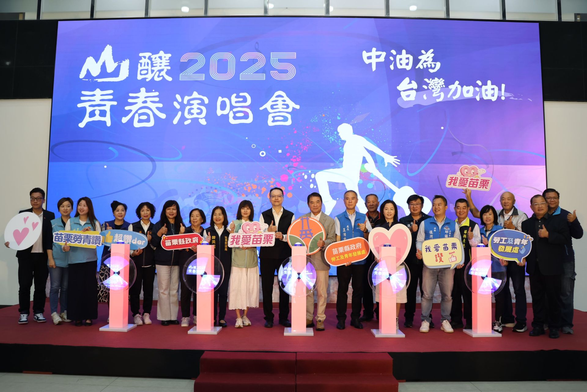 苗栗縣政府將於12月初在巨蛋體育館舉辦「2025山釀青春演唱會」,連續2天邀請眾多超強卡司,為老中青三代鄉親提供多元活動,今(28)日勞青處於縣府大廳舉辦記者會,縣長鍾東錦與中油探採事業部副執行長湯珠正、議員許櫻萍、張志宇、徐筱菁、曾美露、林寶珠、鄭碧玉、廖秀紅、立委邱鎮軍秘書等人共同為演唱會揭開序幕,會中歌手范怡文獻唱《這些日子以來》,接著邀請縣長鍾東錦合唱《恰似你的溫柔》,現場觀眾跟著旋律哼唱這兩首膾炙人口的歌曲。