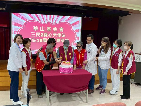 【視傳媒記者吉雄世高雄報導】華山基金會三民2天使站建站至今滿10週年,目前服務105位、累計服務超過300位弱勢長輩。為感謝日常服務的義工及在地企業長年支持,於今日上午9點30分在高雄醫學大學附設中和紀念醫院舉辦「建站10週年感恩茶會」,邀請華山服務的長輩及百歲人瑞蔡爺爺現場揮毫寫春聯傳遞祝福。