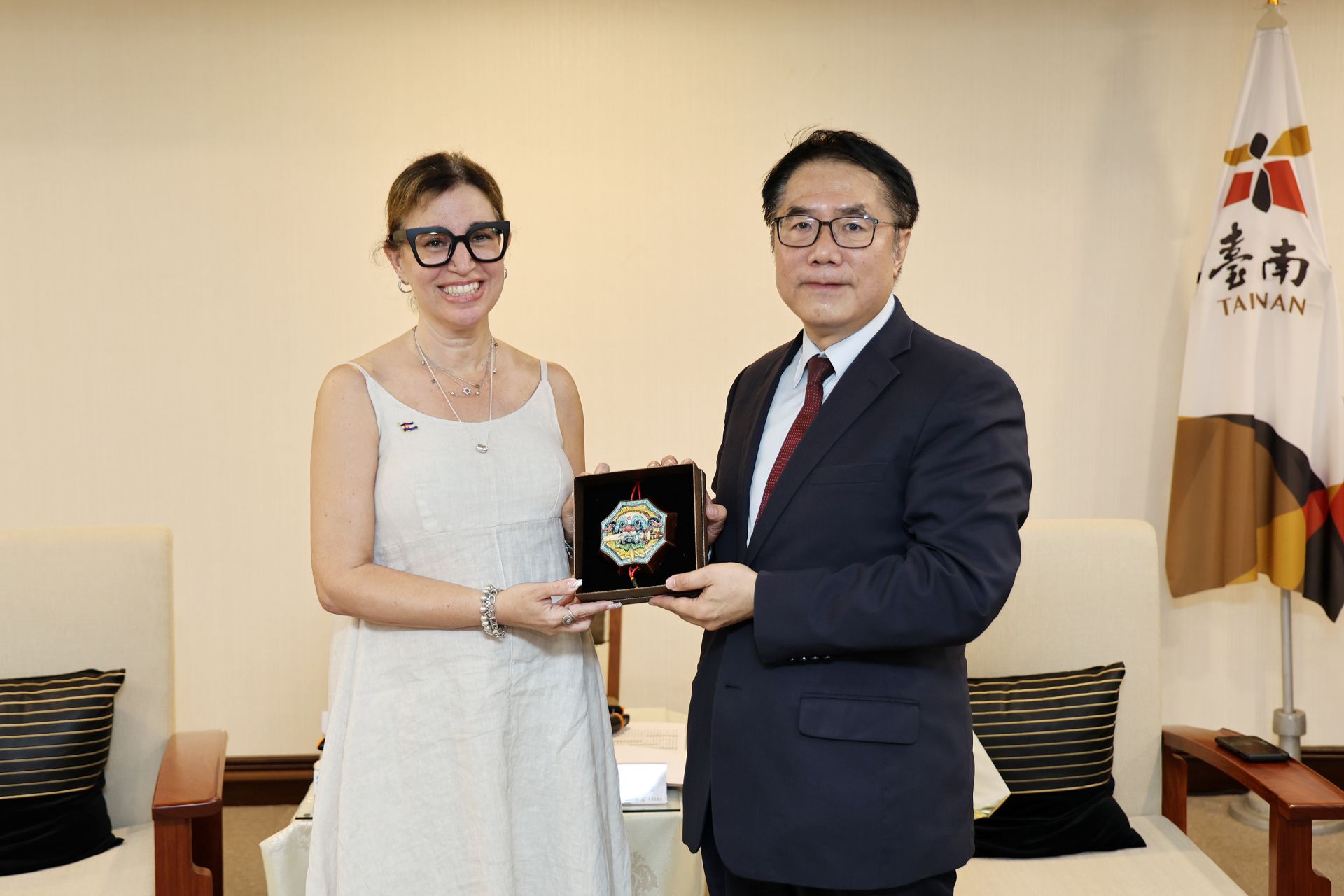 由外交部所籌組的美國地方政要訪問團「美國中西部跨州議會領袖團」一行11人於今(30)日拜會台南市政府,黃偉哲市長偕新聞及國際關係處蘇恩恩處長接待訪團。該團成員皆是首次到訪台南,黃市長除介紹台南的城市特色外,雙方也就農業、半導體、綠能、精密科技等議題進行交流,希望進一步強化台美地方間的友好合作與互動。