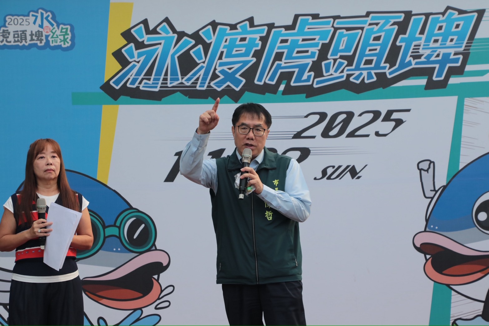 黃偉哲進一步表示,今年農業部農田水利署也在虎頭埤水庫推動多項改善工程,使園區水域與陸域環境全面升級。期盼每年泳渡活動都能讓民眾看見虎頭埤的新風貌,一年四季來訪都能感受「水與綠」交織的自然之美,並歡迎大家攜家帶眷,體驗這場結合運動、自然與親子同樂的幸福旅程。